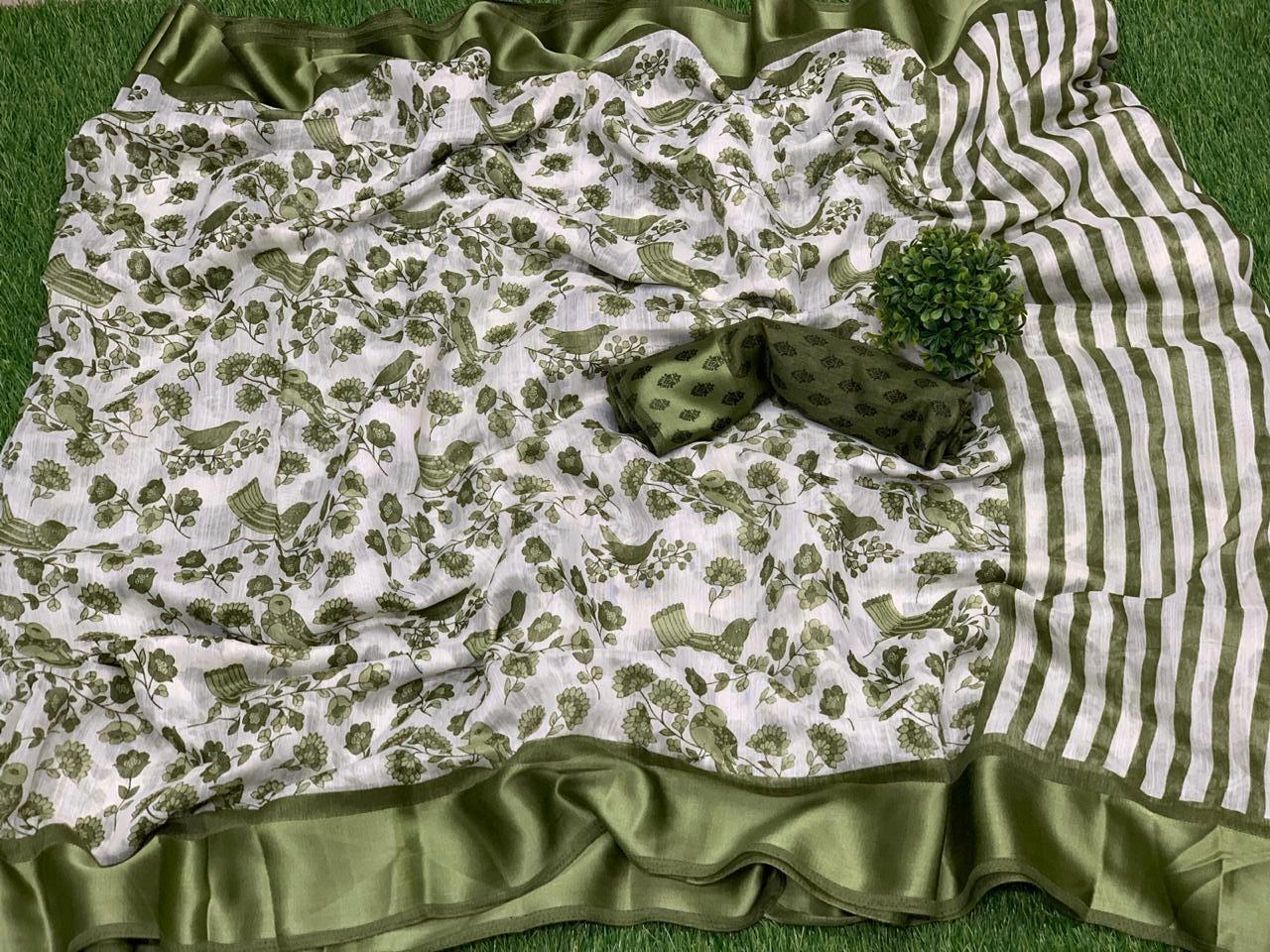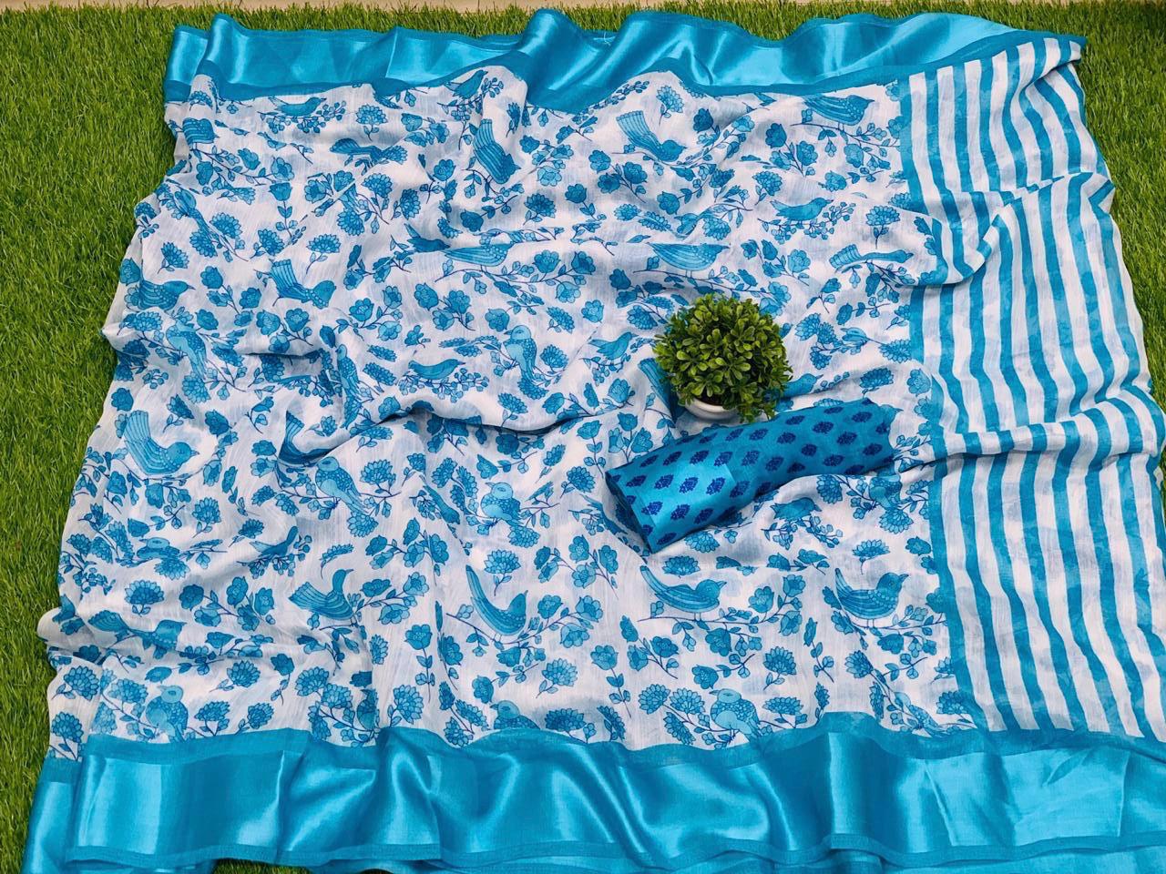 Launching *Panchhi* awesome print sartin patta Sarees collections ? ??Fabric - light cotton print beautiful bird with sartin border and design of blouse ?Wow price *550/-*??? Gst ship extra ?4 Multiples colours Available ? Ready to dispatch ??? |