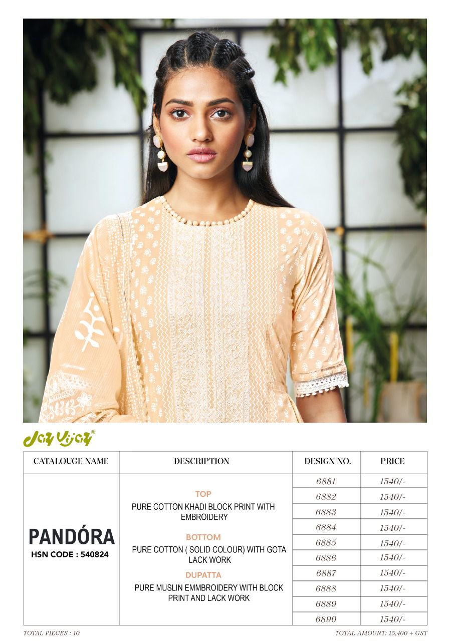 Buy Online Pandora By Jay Vijay Cotton Suit Wholesale Supplier Traders In Surat 10 Pcs of Full Catalogue at Wholesale Price. Looking for Pandora By Jay Vijay Cotton Suit Wholesale Supplier Traders In Surat Full Catalouge at Best Price? Buy Now Pandora By Jay Vijay Cotton Suit Wholesale Supplier Traders In Surat at Wholesale Rate of Rs 15400 with Total 10 Pcs from authroized dealer and supplier of JAY VIJAY Brand. Cost of Each piece is just only Rs 1540 which is very low and affordable price to resale the product in your retail store ,This is Surat based Wholesale Supplier & Dealer of JAY VIJAY Brand. Click on Brand name to Know more about JAY VIJAY Brand's products.Call or Whatsapp on 9898838984 for booking or enquiry