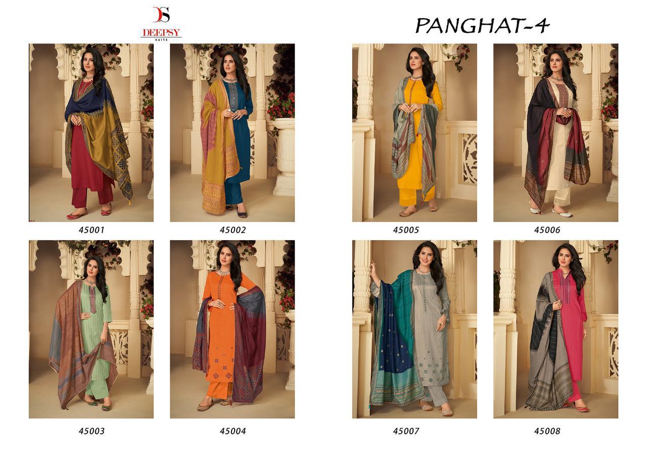Buy Online Panghat 4 By Deepsy Jam Silk Suits Wholesale Supplier Gujarat 8 Pcs of Full Catalogue at Wholesale Price. Looking for Panghat 4 By Deepsy Jam Silk Suits Wholesale Supplier Gujarat Full Catalouge at Best Price? Buy Now Panghat 4 By Deepsy Jam Silk Suits Wholesale Supplier Gujarat at Wholesale Rate of Rs 6000 with Total 8 Pcs from authroized dealer and supplier of DEEPSY Brand. Cost of Each piece is just only Rs 750 which is very low and affordable price to resale the product in your retail store ,This is Surat based Wholesale Supplier & Dealer of DEEPSY Brand. Click on Brand name to Know more about DEEPSY Brand's products.Call or Whatsapp on 9898838984 for booking or enquiry