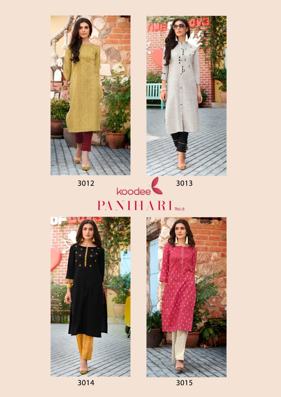 Buy Online Panihari 3 By Koodee Kurtis With Bottom Wholesale Dealer And Exporter India 4 Pcs of Full Catalogue at Wholesale Price. Looking for Panihari 3 By Koodee Kurtis With Bottom Wholesale Dealer And Exporter India Full Catalouge at Best Price? Buy Now Panihari 3 By Koodee Kurtis With Bottom Wholesale Dealer And Exporter India at Wholesale Rate of Rs 2780 with Total 4 Pcs from authroized dealer and supplier of Brand. Cost of Each piece is just only Rs 695 which is very low and affordable price to resale the product in your retail store ,This is Surat based Wholesale Supplier & Dealer of Brand. Click on Brand name to Know more about Brand's products.Call or Whatsapp on 9898838984 for booking or enquiry