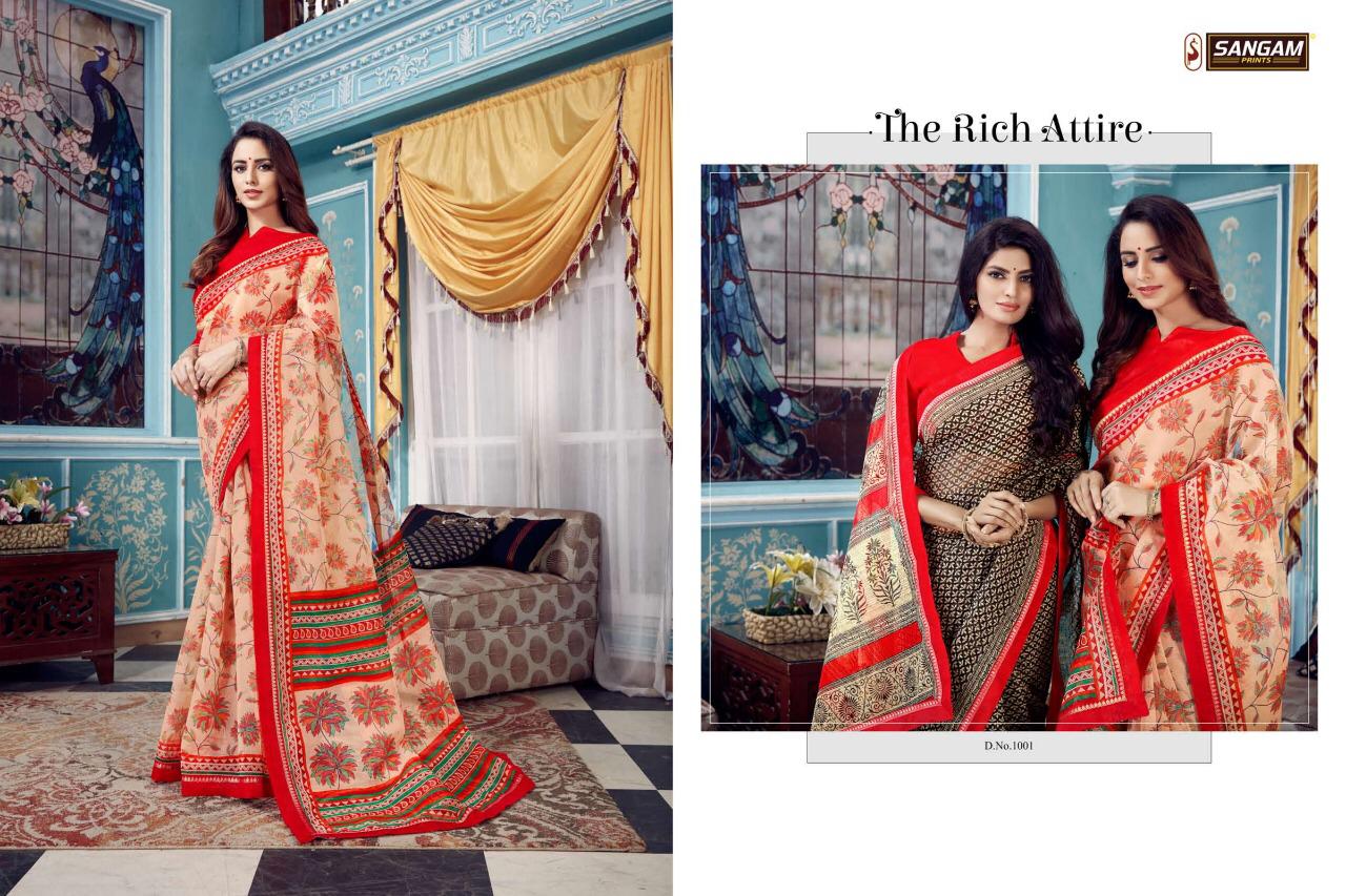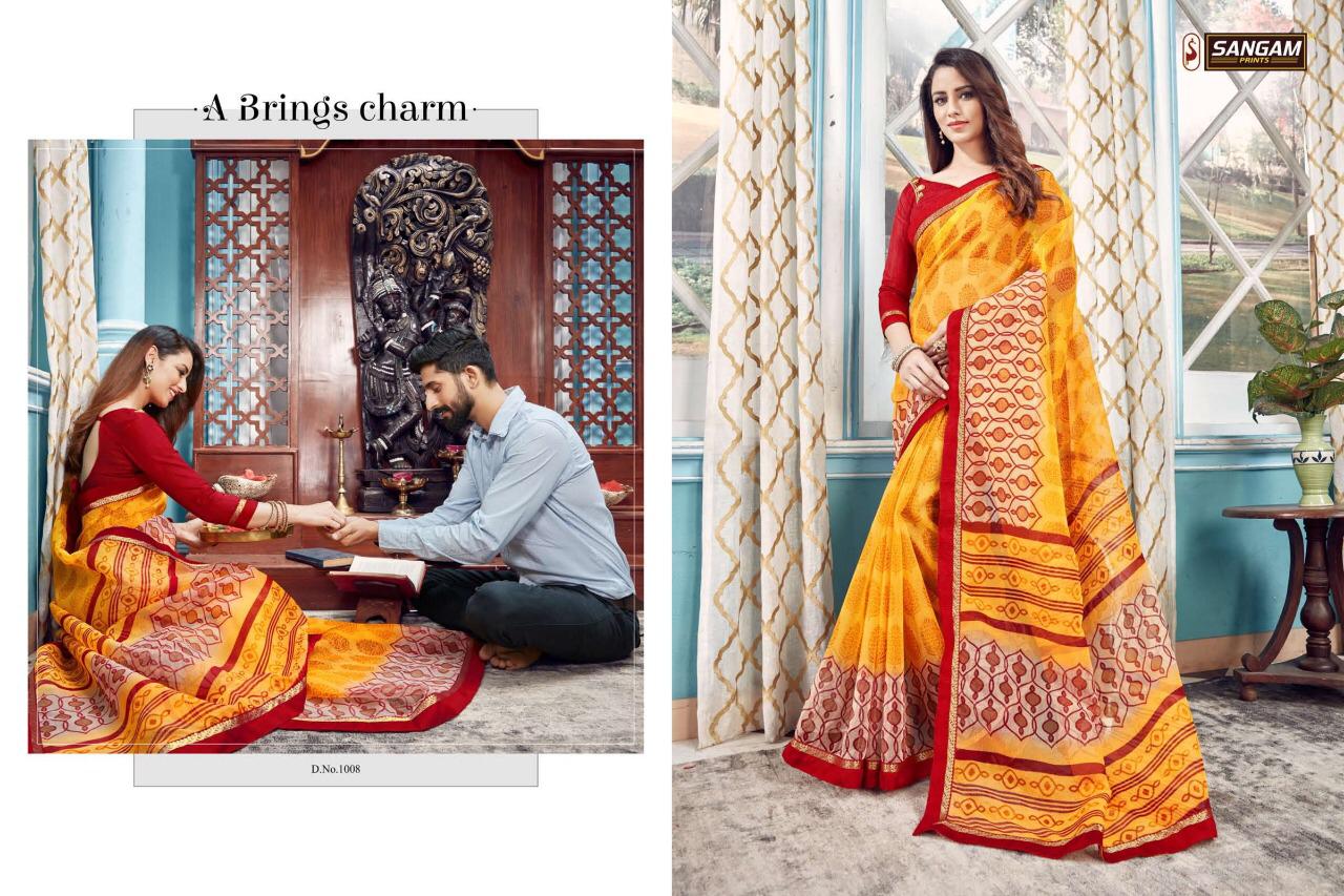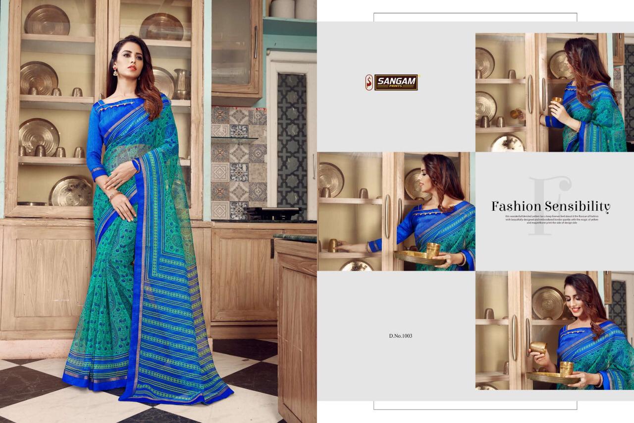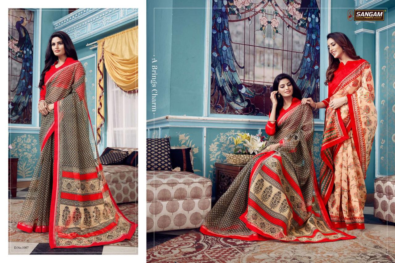 Buy Online Panihari By Sangam Series 1001 To 1008 Cotton Printed Sarees Wholesale Supplier Surat 8 Pcs of Full Catalogue at Wholesale Price. Looking for Panihari By Sangam Series 1001 To 1008 Cotton Printed Sarees Wholesale Supplier Surat Full Catalouge at Best Price? Buy Now Panihari By Sangam Series 1001 To 1008 Cotton Printed Sarees Wholesale Supplier Surat at Wholesale Rate of Rs 4000 with Total 8 Pcs from authroized dealer and supplier of SANGAM Brand. Cost of Each piece is just only Rs 500 which is very low and affordable price to resale the product in your retail store ,This is Surat based Wholesale Supplier & Dealer of SANGAM Brand. Click on Brand name to Know more about SANGAM Brand's products.Call or Whatsapp on 9898838984 for booking or enquiry