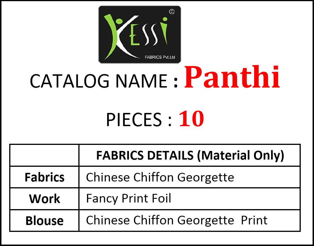 Buy Online Panthi By Kessi Chiffon Georgette Sarees Wholesale Supplier And Dealer Surat 10 Pcs of Full Catalogue at Wholesale Price. Looking for Panthi By Kessi Chiffon Georgette Sarees Wholesale Supplier And Dealer Surat Full Catalouge at Best Price? Buy Now Panthi By Kessi Chiffon Georgette Sarees Wholesale Supplier And Dealer Surat at Wholesale Rate of Rs 6490 with Total 10 Pcs from authroized dealer and supplier of KESSI Brand. Cost of Each piece is just only Rs 649 which is very low and affordable price to resale the product in your retail store ,This is Surat based Wholesale Supplier & Dealer of KESSI Brand. Click on Brand name to Know more about KESSI Brand's products.Call or Whatsapp on 9898838984 for booking or enquiry