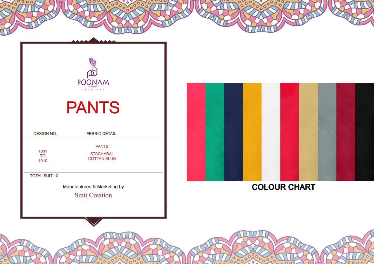 *Poonam Designer®?*??? (Smit creation) � *PANTS*� Bottom(pant)?- Premium Quality stretchable cottan slub pent with 3 pockets. Size ?? M,L,XL,xxl. (Pack of 4) Rate- 330 per Pcs . Set to set. GST 5 Percent Extra. Delivery 2 days *Single colour 4 size in 1 set. * |