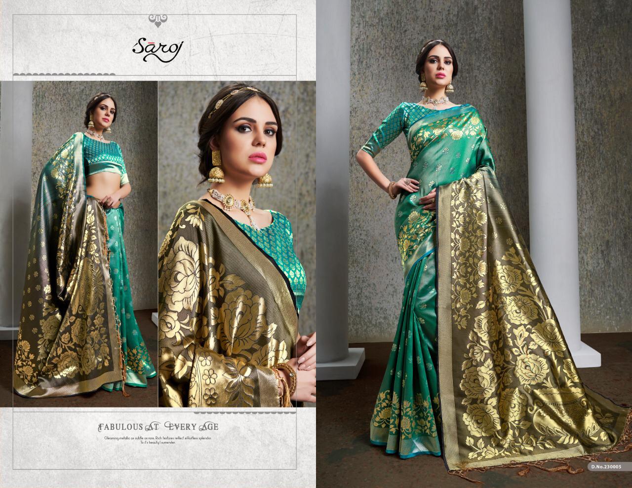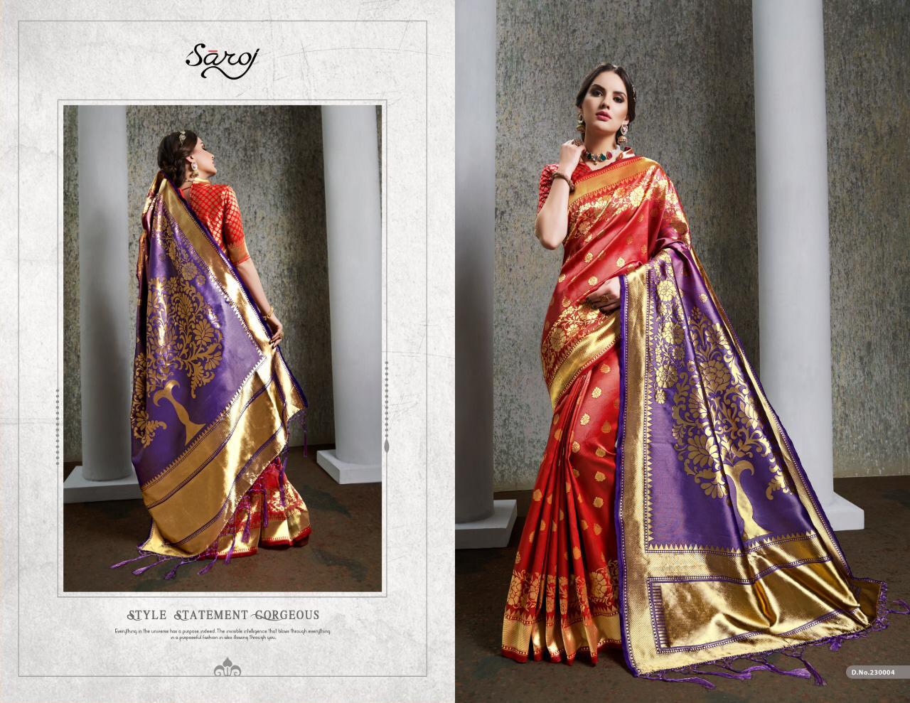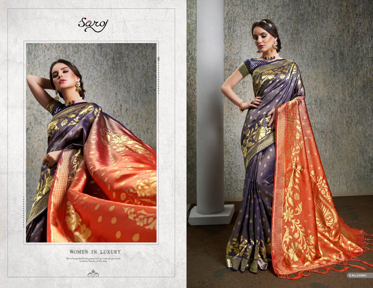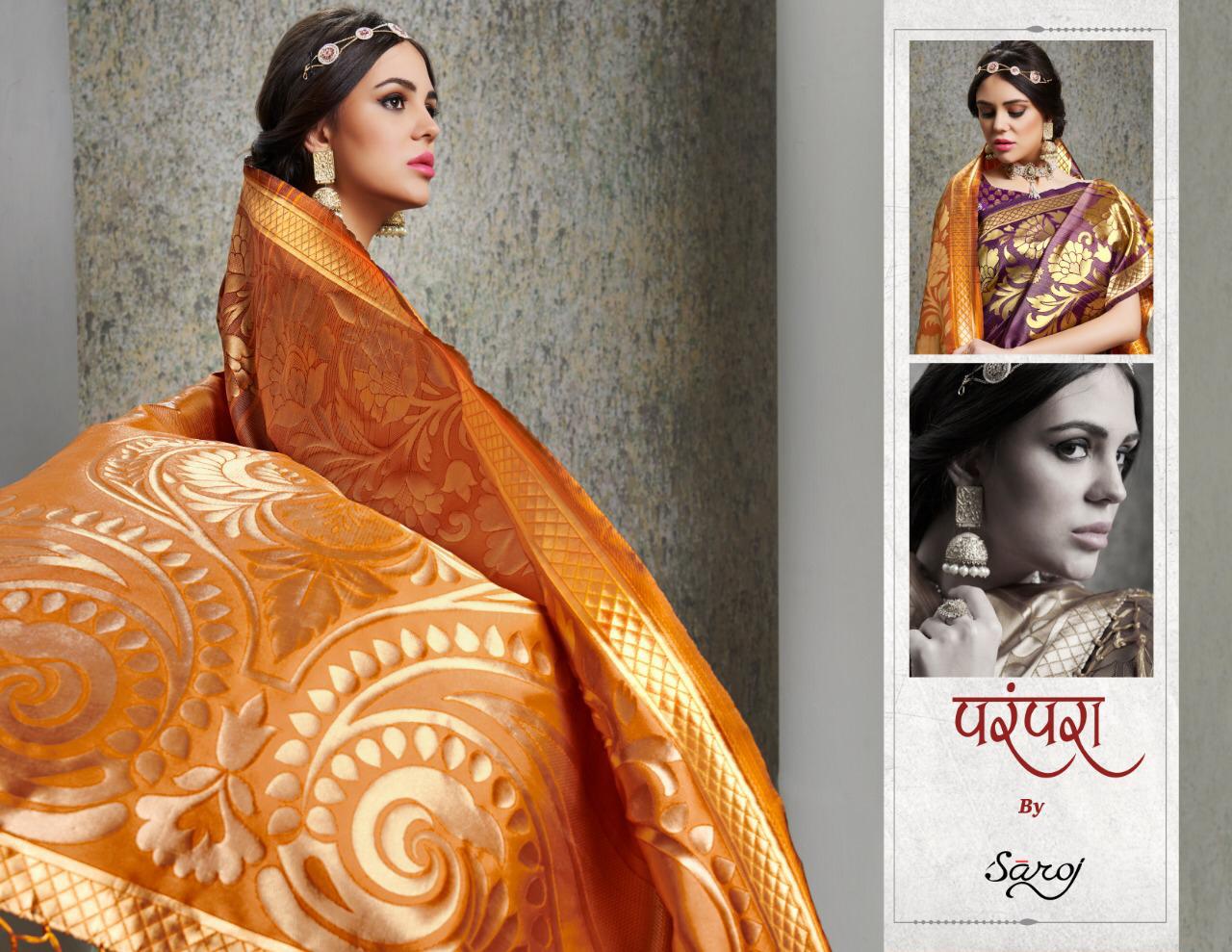 Buy Online Parampara By Saroj 230001 Series Fancy Party Wear Banarsi Silk Saree Catlog Wholesaler Surat 6 Pcs of Full Catalogue at Wholesale Price. Looking for Parampara By Saroj 230001 Series Fancy Party Wear Banarsi Silk Saree Catlog Wholesaler Surat Full Catalouge at Best Price? Buy Now Parampara By Saroj 230001 Series Fancy Party Wear Banarsi Silk Saree Catlog Wholesaler Surat at Wholesale Rate of Rs 8460 with Total 6 Pcs from authroized dealer and supplier of SAROJ SAREE Brand. Cost of Each piece is just only Rs 1410 which is very low and affordable price to resale the product in your retail store ,This is Surat based Wholesale Supplier & Dealer of SAROJ SAREE Brand. Click on Brand name to Know more about SAROJ SAREE Brand's products.Call or Whatsapp on 9898838984 for booking or enquiry