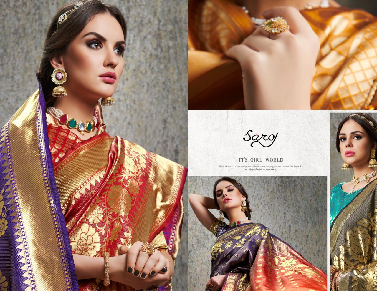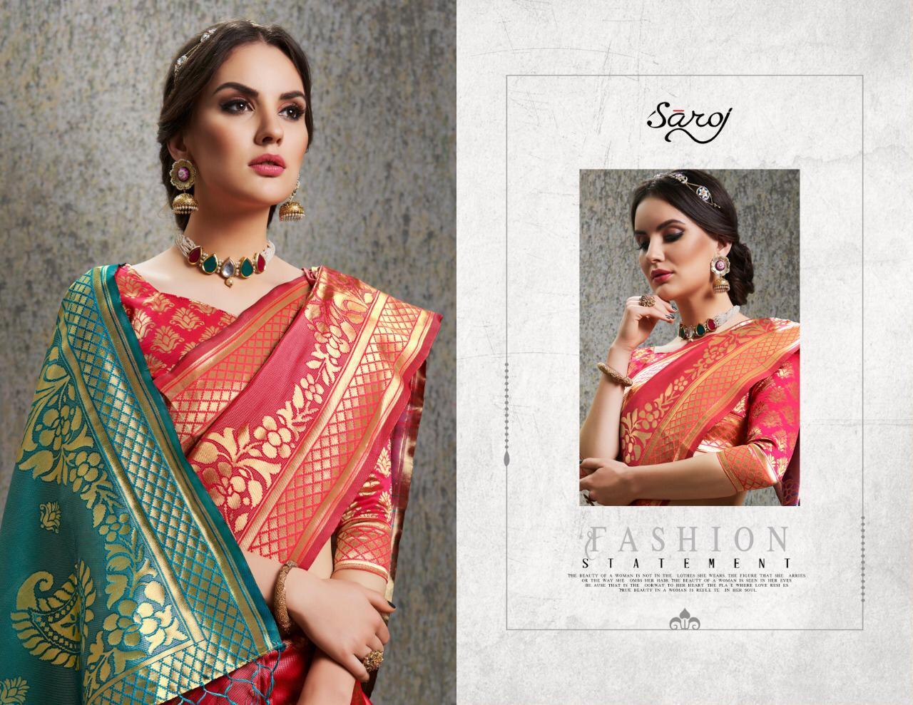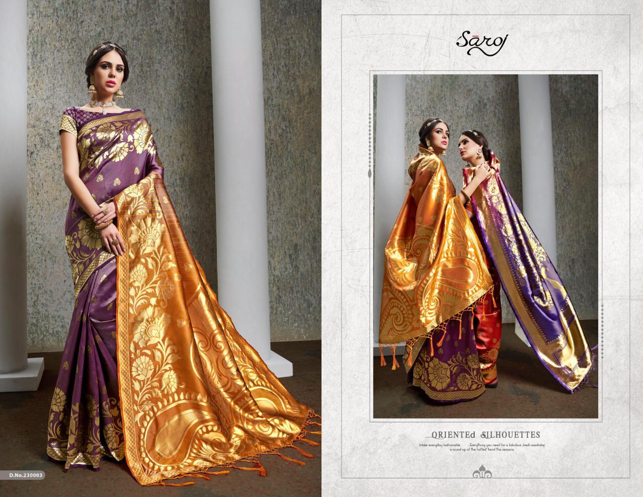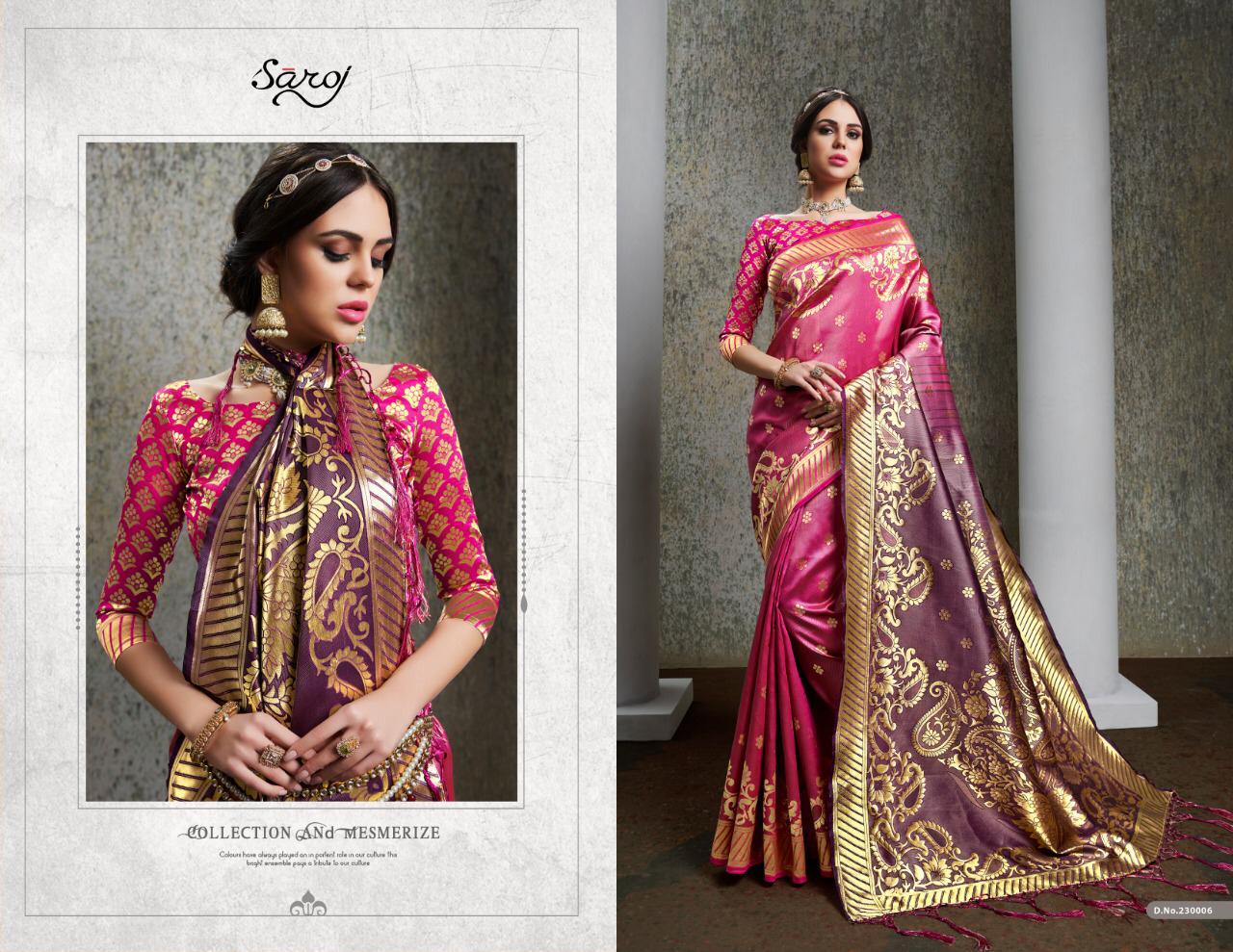 Buy Online Parampara By Saroj 230001 Series Fancy Party Wear Banarsi Silk Saree Catlog Wholesaler Surat 6 Pcs of Full Catalogue at Wholesale Price. Looking for Parampara By Saroj 230001 Series Fancy Party Wear Banarsi Silk Saree Catlog Wholesaler Surat Full Catalouge at Best Price? Buy Now Parampara By Saroj 230001 Series Fancy Party Wear Banarsi Silk Saree Catlog Wholesaler Surat at Wholesale Rate of Rs 8460 with Total 6 Pcs from authroized dealer and supplier of SAROJ SAREE Brand. Cost of Each piece is just only Rs 1410 which is very low and affordable price to resale the product in your retail store ,This is Surat based Wholesale Supplier & Dealer of SAROJ SAREE Brand. Click on Brand name to Know more about SAROJ SAREE Brand's products.Call or Whatsapp on 9898838984 for booking or enquiry