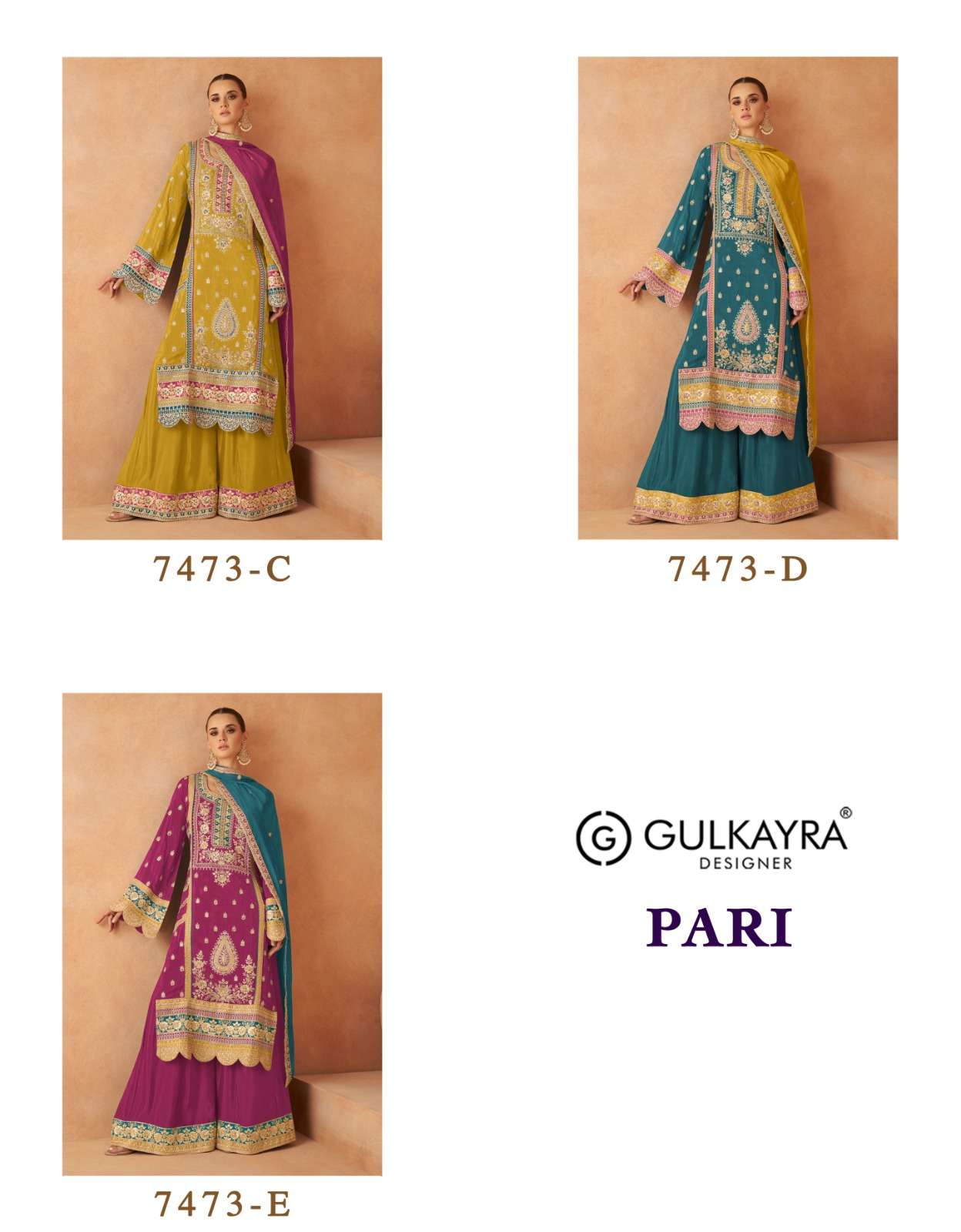 Buy Online PARI by Gulkayra Designer Real Chinon Plazoo suit collection manufacturer surat 3 Pcs of Full Catalogue at Wholesale Price. Looking for PARI by Gulkayra Designer Real Chinon Plazoo suit collection manufacturer surat Full Catalouge at Best Price? Buy Now PARI by Gulkayra Designer Real Chinon Plazoo suit collection manufacturer surat at Wholesale Rate of Rs 8100 with Total 3 Pcs from authroized dealer and supplier of Gulkayra designer Brand. Cost of Each piece is just only Rs 2700 which is very low and affordable price to resale the product in your retail store ,This is Surat based Wholesale Supplier & Dealer of Gulkayra designer Brand. Click on Brand name to Know more about Gulkayra designer Brand's products.Call or Whatsapp on 9898838984 for booking or enquiry