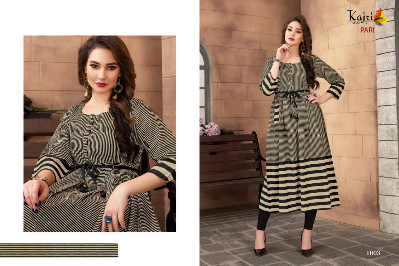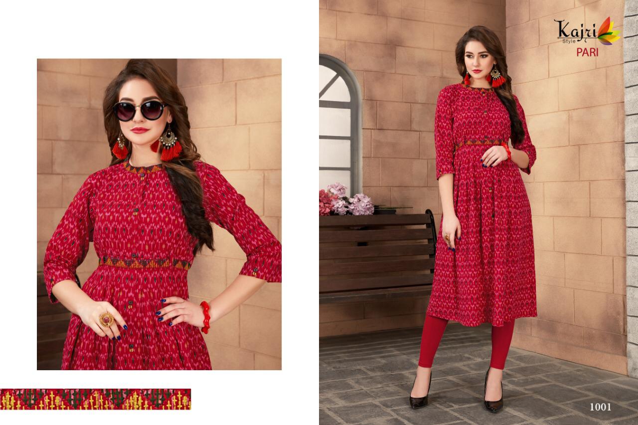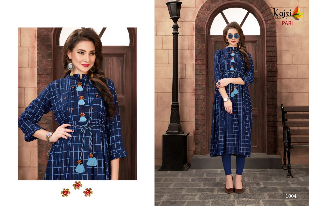 Buy Online Pari Vol 1 By Kajri Style Reyon Printed Kurtis Wholesale Supplier And Dealer Surat 5 Pcs of Full Catalogue at Wholesale Price. Looking for Pari Vol 1 By Kajri Style Reyon Printed Kurtis Wholesale Supplier And Dealer Surat Full Catalouge at Best Price? Buy Now Pari Vol 1 By Kajri Style Reyon Printed Kurtis Wholesale Supplier And Dealer Surat at Wholesale Rate of Rs 2675 with Total 5 Pcs from authroized dealer and supplier of KAJRI STYLE Brand. Cost of Each piece is just only Rs 535 which is very low and affordable price to resale the product in your retail store ,This is Surat based Wholesale Supplier & Dealer of KAJRI STYLE Brand. Click on Brand name to Know more about KAJRI STYLE Brand's products.Call or Whatsapp on 9898838984 for booking or enquiry