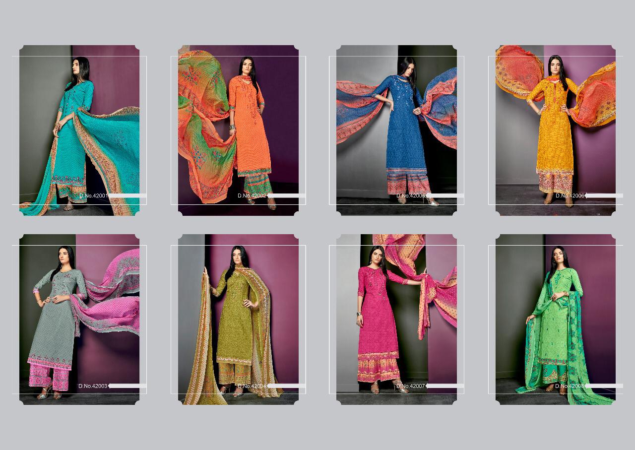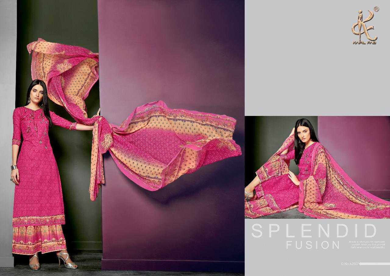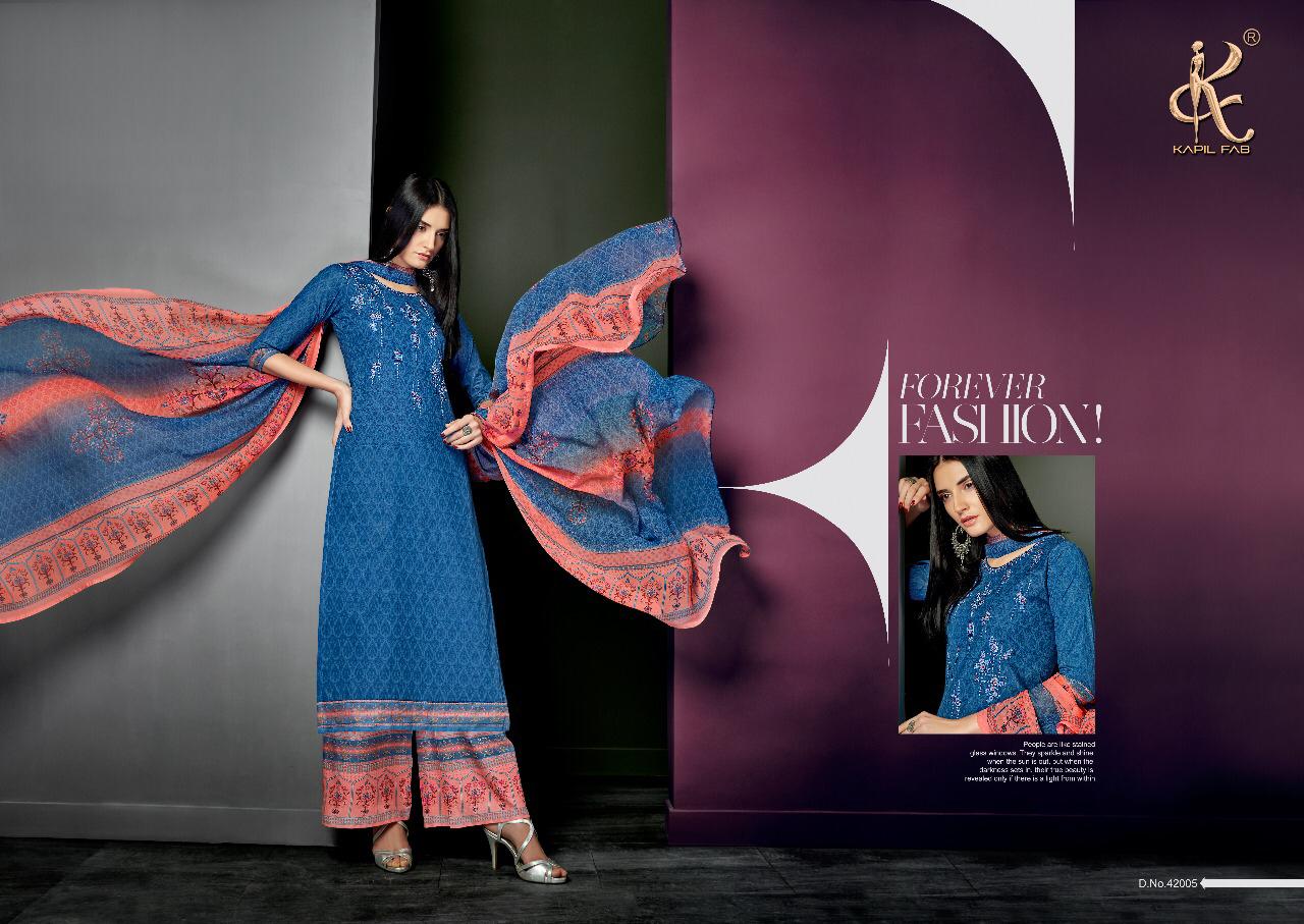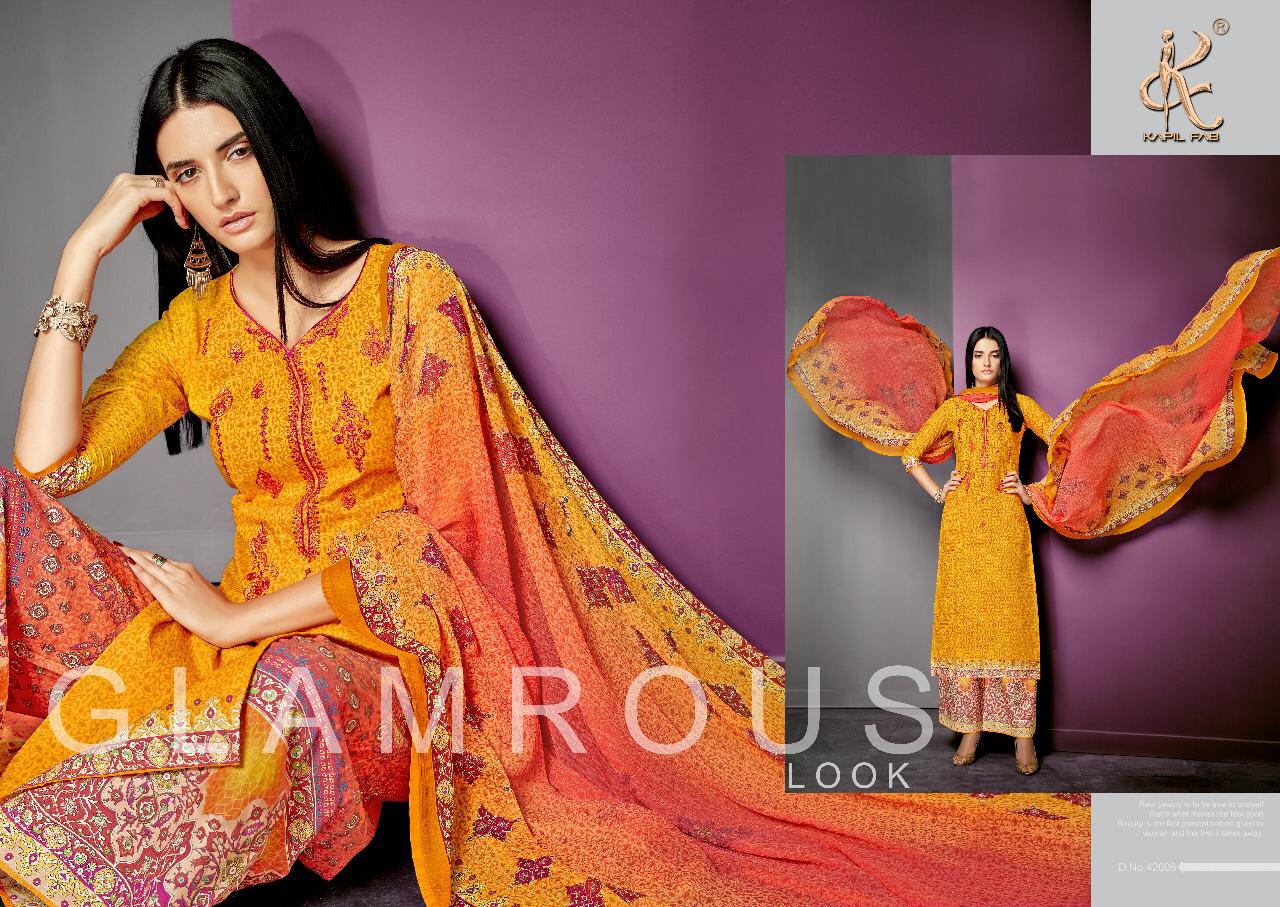 Buy Online Pari Vol 3 By Kapil Fab Series 42001 To 42008 Cotton Embroidered Designer Dress Material Wholesaler Gujarat 8 Pcs of Full Catalogue at Wholesale Price. Looking for Pari Vol 3 By Kapil Fab Series 42001 To 42008 Cotton Embroidered Designer Dress Material Wholesaler Gujarat Full Catalouge at Best Price? Buy Now Pari Vol 3 By Kapil Fab Series 42001 To 42008 Cotton Embroidered Designer Dress Material Wholesaler Gujarat at Wholesale Rate of Rs 5400 with Total 8 Pcs from authroized dealer and supplier of KAPIL TRENDZ Brand. Cost of Each piece is just only Rs 675 which is very low and affordable price to resale the product in your retail store ,This is Surat based Wholesale Supplier & Dealer of KAPIL TRENDZ Brand. Click on Brand name to Know more about KAPIL TRENDZ Brand's products.Call or Whatsapp on 9898838984 for booking or enquiry
