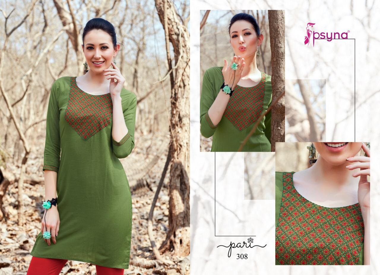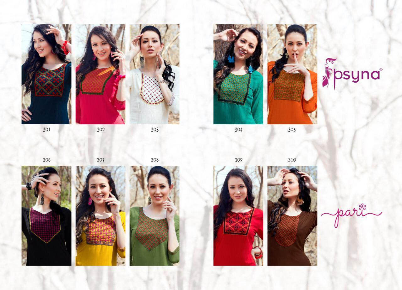 Buy Online Pari Vol 3 By Psyna 301 Series Fancy Reyon Slub Kurti Collection Wholesaler Surat 10 Pcs of Full Catalogue at Wholesale Price. Looking for Pari Vol 3 By Psyna 301 Series Fancy Reyon Slub Kurti Collection Wholesaler Surat Full Catalouge at Best Price? Buy Now Pari Vol 3 By Psyna 301 Series Fancy Reyon Slub Kurti Collection Wholesaler Surat at Wholesale Rate of Rs 2990 with Total 10 Pcs from authroized dealer and supplier of PSYNA Brand. Cost of Each piece is just only Rs 299 which is very low and affordable price to resale the product in your retail store ,This is Surat based Wholesale Supplier & Dealer of PSYNA Brand. Click on Brand name to Know more about PSYNA Brand's products.Call or Whatsapp on 9898838984 for booking or enquiry