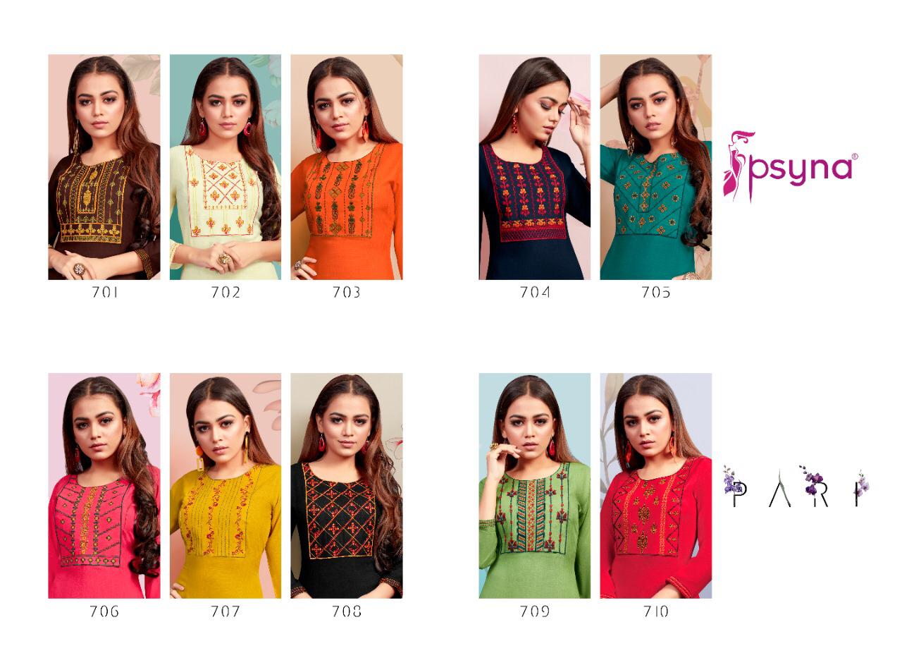 Buy Online Pari Vol 7 By Pysna Kurtis Wholesale Supplier And Dealer Surat 10 Pcs of Full Catalogue at Wholesale Price. Looking for Pari Vol 7 By Pysna Kurtis Wholesale Supplier And Dealer Surat Full Catalouge at Best Price? Buy Now Pari Vol 7 By Pysna Kurtis Wholesale Supplier And Dealer Surat at Wholesale Rate of Rs 2990 with Total 10 Pcs from authroized dealer and supplier of PSYNA Brand. Cost of Each piece is just only Rs 299 which is very low and affordable price to resale the product in your retail store ,This is Surat based Wholesale Supplier & Dealer of PSYNA Brand. Click on Brand name to Know more about PSYNA Brand's products.Call or Whatsapp on 9898838984 for booking or enquiry
