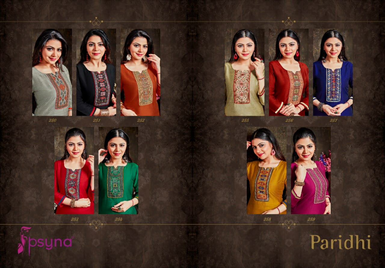 Buy Online Paridhi Vol 25 By Psyna Kurtis Wholesale Supplier Gujarat 10 Pcs of Full Catalogue at Wholesale Price. Looking for Paridhi Vol 25 By Psyna Kurtis Wholesale Supplier Gujarat Full Catalouge at Best Price? Buy Now Paridhi Vol 25 By Psyna Kurtis Wholesale Supplier Gujarat at Wholesale Rate of Rs 2990 with Total 10 Pcs from authroized dealer and supplier of PSYNA Brand. Cost of Each piece is just only Rs 299 which is very low and affordable price to resale the product in your retail store ,This is Surat based Wholesale Supplier & Dealer of PSYNA Brand. Click on Brand name to Know more about PSYNA Brand's products.Call or Whatsapp on 9898838984 for booking or enquiry