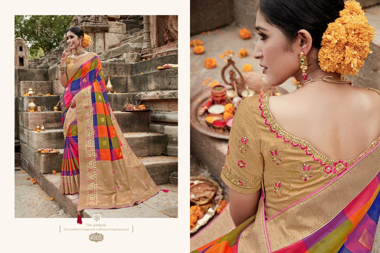 Brand Â? ???? Maataram product Catlog name Â? Parinay Bhandan Fabric detail. silk fab.in all over cheqs weving with jaikard pallu border n emb.blouse Total 9 saree in one set . *Rate - 1695/- per Pcs * * set & Loose & Singel * GST 5 Percent Extra . |