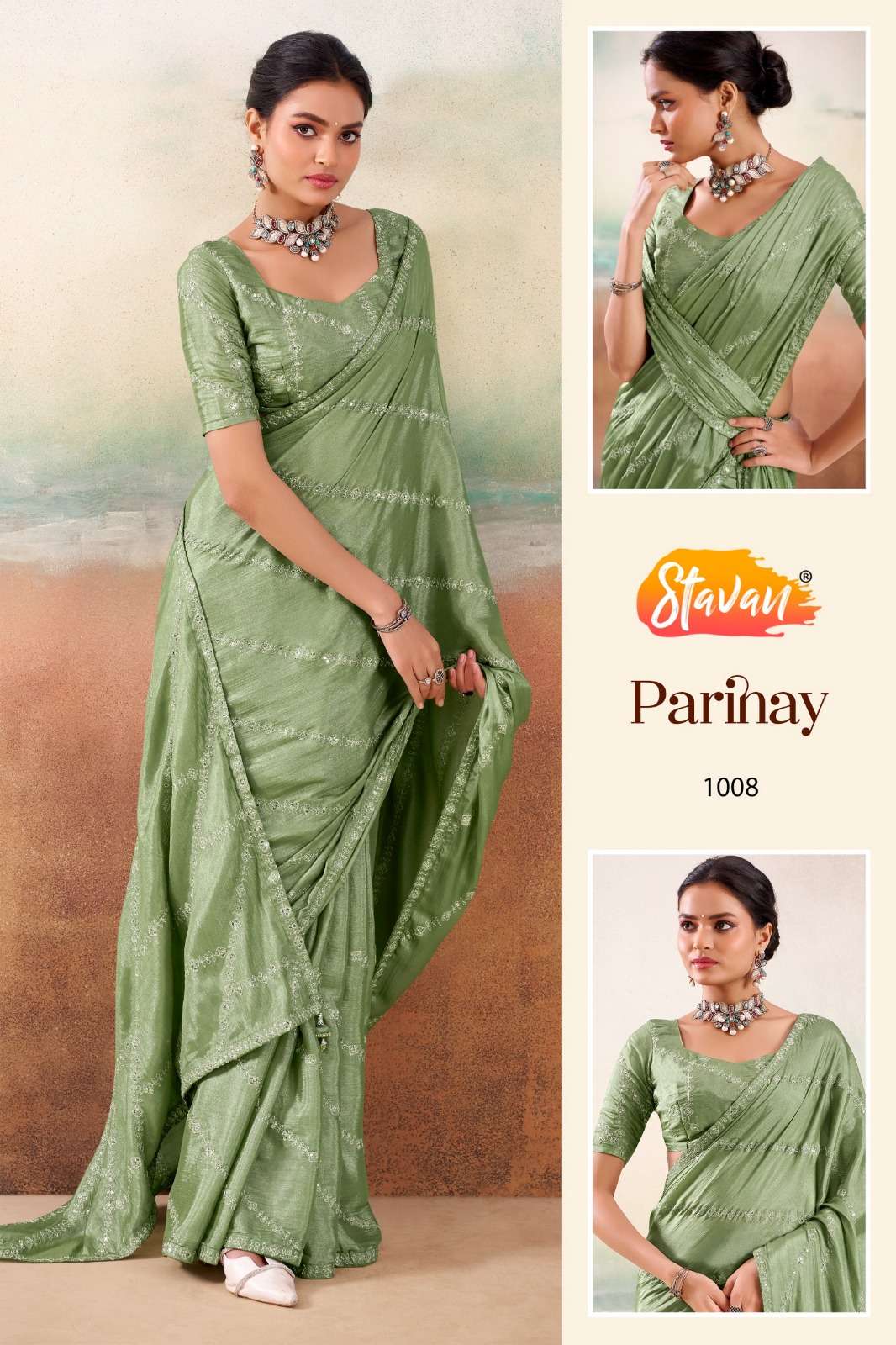 Buy Online Parinay by STAVAN saree Collection manufacturer surat 10 Pcs of Full Catalogue at Wholesale Price. Looking for Parinay by STAVAN saree Collection manufacturer surat Full Catalouge at Best Price? Buy Now Parinay by STAVAN saree Collection manufacturer surat at Wholesale Rate of Rs 10600 with Total 10 Pcs from authroized dealer and supplier of BRAND'S Brand. Cost of Each piece is just only Rs 1060 which is very low and affordable price to resale the product in your retail store ,This is Surat based Wholesale Supplier & Dealer of BRAND'S Brand. Click on Brand name to Know more about BRAND'S Brand's products.Call or Whatsapp on 9898838984 for booking or enquiry