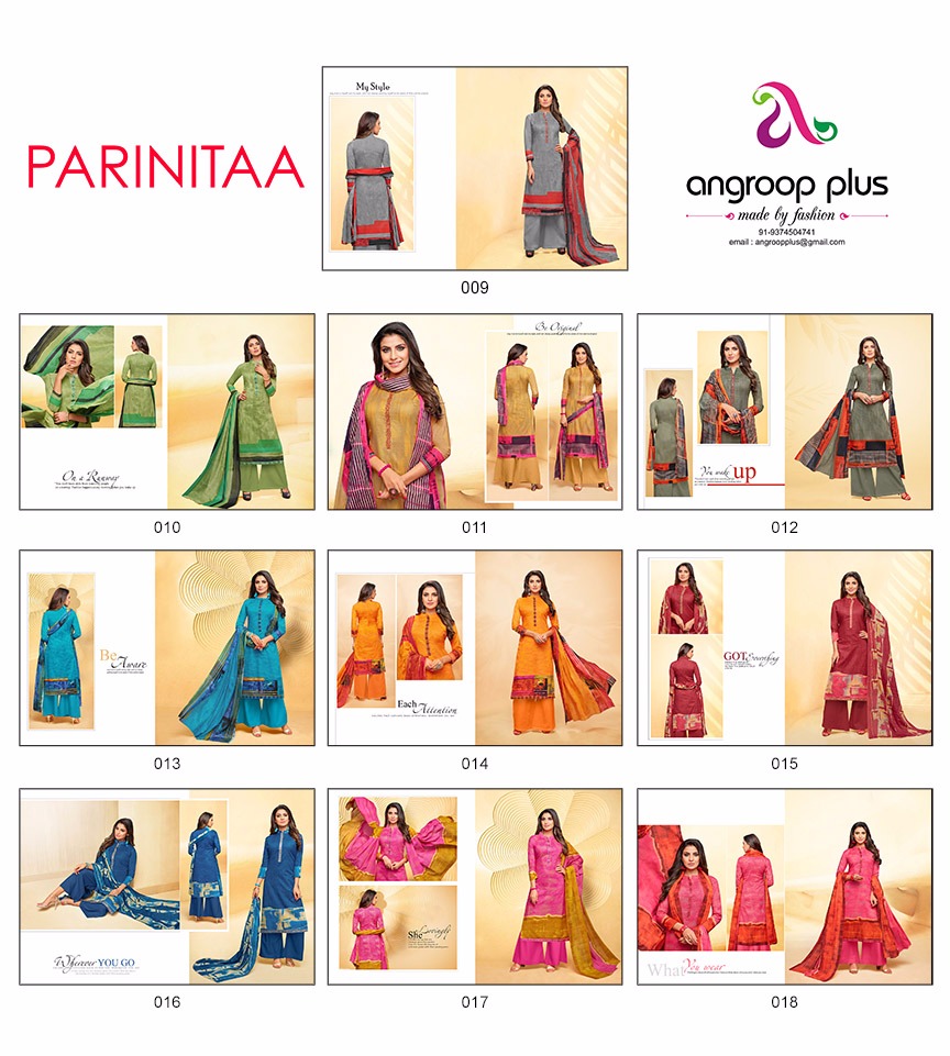 Buy Online Parinitaa By Angroop Plus Pure Cotton Suits Wholesale Supplier And Dealer Surat 10 Pcs of Full Catalogue at Wholesale Price. Looking for Parinitaa By Angroop Plus Pure Cotton Suits Wholesale Supplier And Dealer Surat Full Catalouge at Best Price? Buy Now Parinitaa By Angroop Plus Pure Cotton Suits Wholesale Supplier And Dealer Surat at Wholesale Rate of Rs 6500 with Total 10 Pcs from authroized dealer and supplier of ANGROOP PLUS Brand. Cost of Each piece is just only Rs 650 which is very low and affordable price to resale the product in your retail store ,This is Surat based Wholesale Supplier & Dealer of ANGROOP PLUS Brand. Click on Brand name to Know more about ANGROOP PLUS Brand's products.Call or Whatsapp on 9898838984 for booking or enquiry