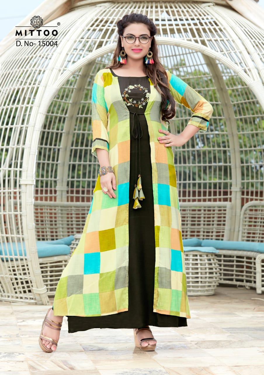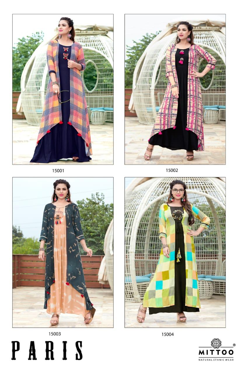 Buy Online Paris By Mittoo Double Layer Gown Style Kurtis Catalog Wholesale Supplier And Dealer Surat 4 Pcs of Full Catalogue at Wholesale Price. Looking for Paris By Mittoo Double Layer Gown Style Kurtis Catalog Wholesale Supplier And Dealer Surat Full Catalouge at Best Price? Buy Now Paris By Mittoo Double Layer Gown Style Kurtis Catalog Wholesale Supplier And Dealer Surat at Wholesale Rate of Rs 3380 with Total 4 Pcs from authroized dealer and supplier of MITTOO Brand. Cost of Each piece is just only Rs 845 which is very low and affordable price to resale the product in your retail store ,This is Surat based Wholesale Supplier & Dealer of MITTOO Brand. Click on Brand name to Know more about MITTOO Brand's products.Call or Whatsapp on 9898838984 for booking or enquiry