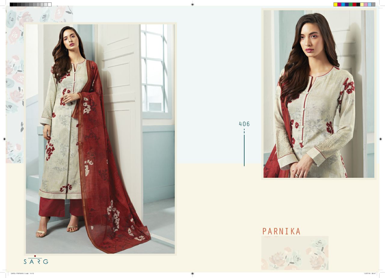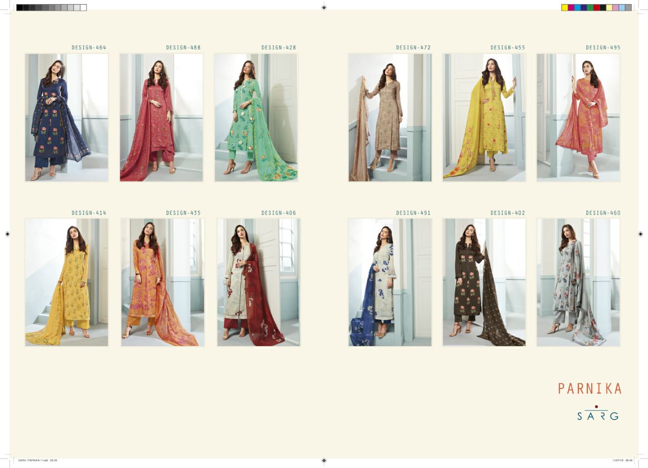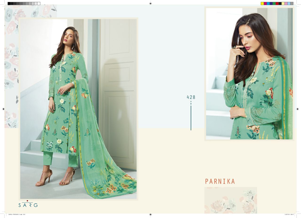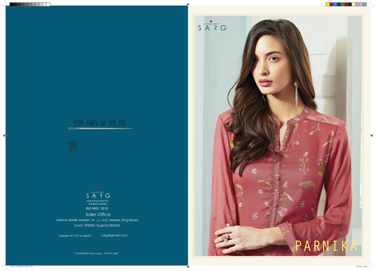 Buy Online Parnika By Sarg Sahiba Digital Printed Suits Wholesale Supplier And Dealer Surat 12 Pcs of Full Catalogue at Wholesale Price. Looking for Parnika By Sarg Sahiba Digital Printed Suits Wholesale Supplier And Dealer Surat Full Catalouge at Best Price? Buy Now Parnika By Sarg Sahiba Digital Printed Suits Wholesale Supplier And Dealer Surat at Wholesale Rate of Rs 22740 with Total 12 Pcs from authroized dealer and supplier of SARG Brand. Cost of Each piece is just only Rs 1895 which is very low and affordable price to resale the product in your retail store ,This is Surat based Wholesale Supplier & Dealer of SARG Brand. Click on Brand name to Know more about SARG Brand's products.Call or Whatsapp on 9898838984 for booking or enquiry