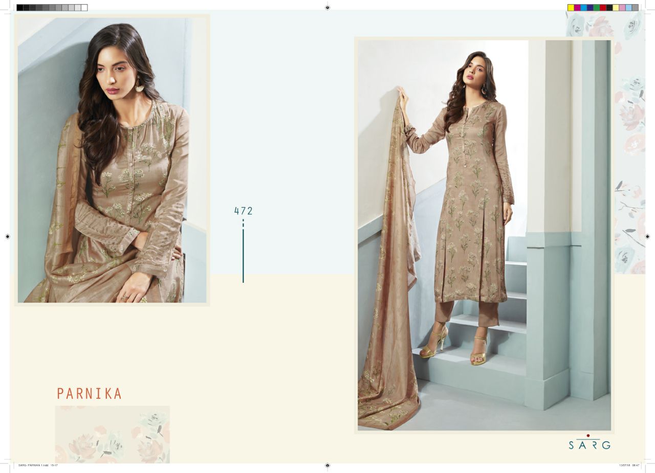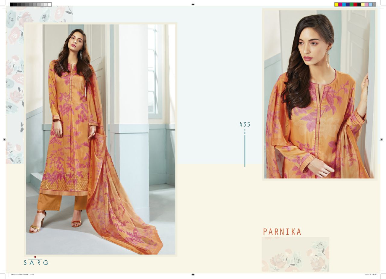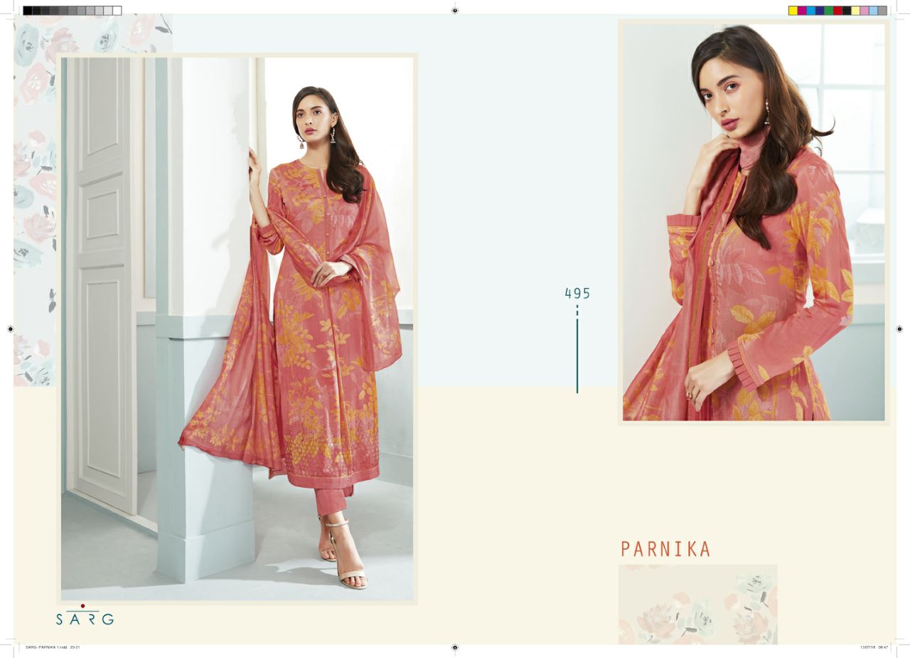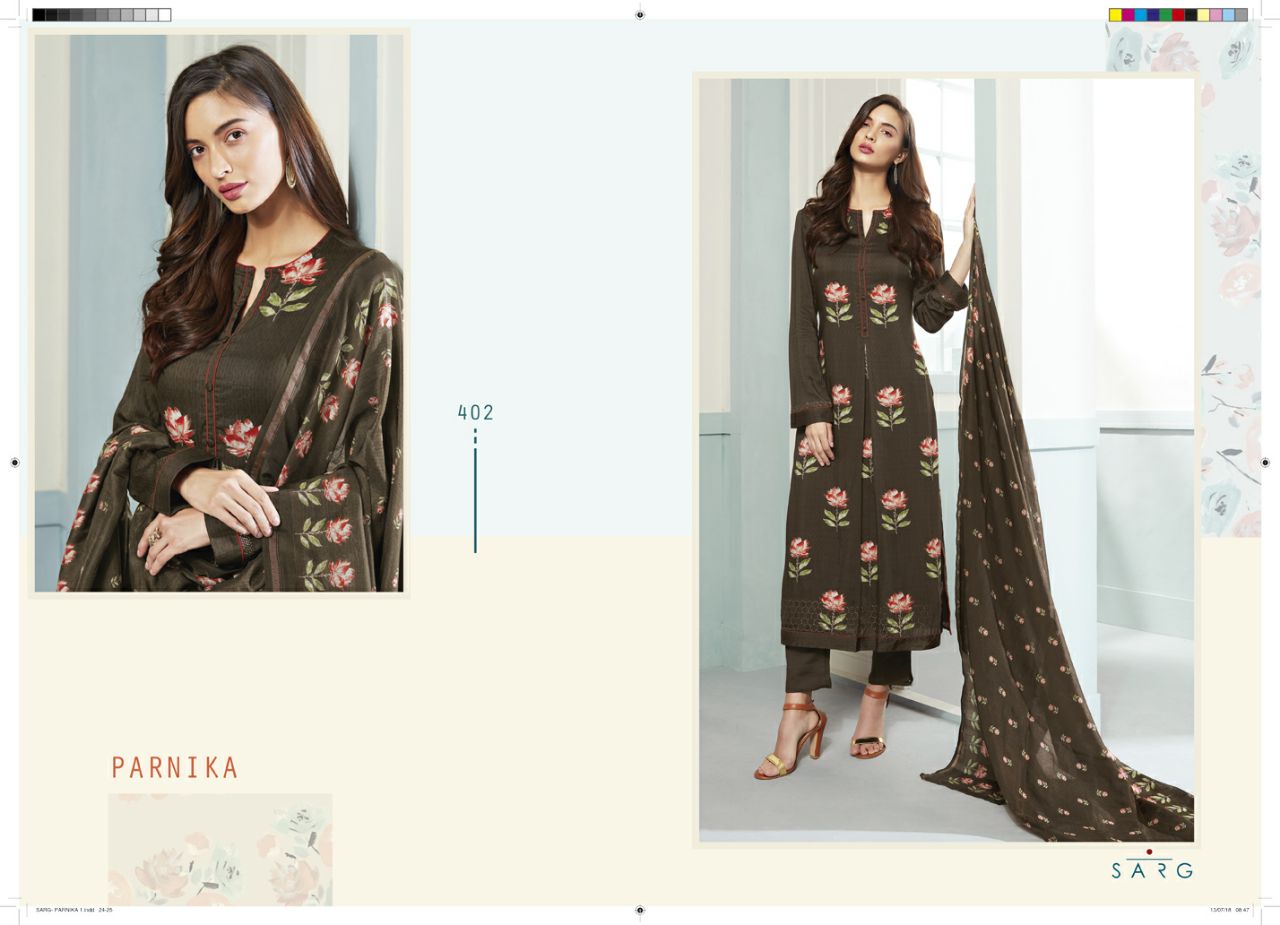 Buy Online Parnika By Sarg Sahiba Digital Printed Suits Wholesale Supplier And Dealer Surat 12 Pcs of Full Catalogue at Wholesale Price. Looking for Parnika By Sarg Sahiba Digital Printed Suits Wholesale Supplier And Dealer Surat Full Catalouge at Best Price? Buy Now Parnika By Sarg Sahiba Digital Printed Suits Wholesale Supplier And Dealer Surat at Wholesale Rate of Rs 22740 with Total 12 Pcs from authroized dealer and supplier of SARG Brand. Cost of Each piece is just only Rs 1895 which is very low and affordable price to resale the product in your retail store ,This is Surat based Wholesale Supplier & Dealer of SARG Brand. Click on Brand name to Know more about SARG Brand's products.Call or Whatsapp on 9898838984 for booking or enquiry