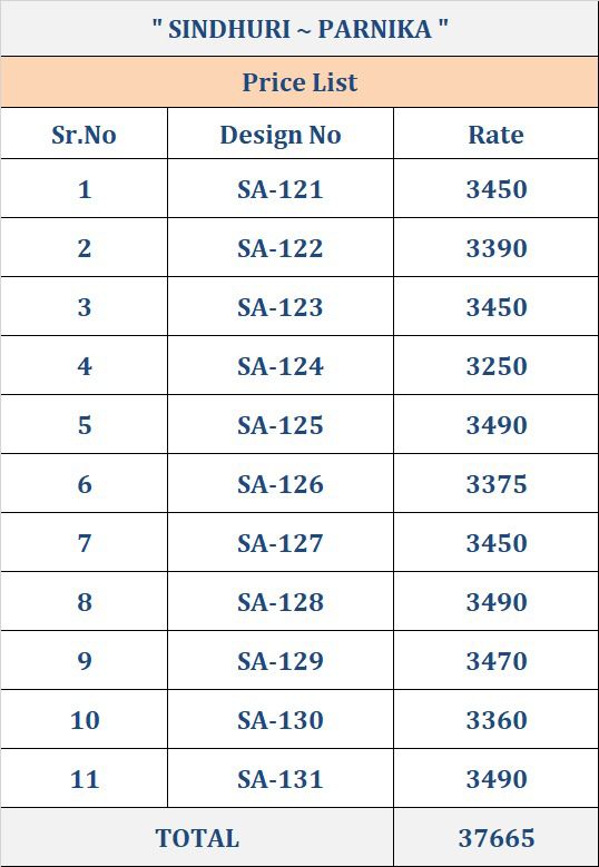 Brand - Kimora Sindhuri Series - SA-121 to SA-131. Set @ loose @ Singel 100+single |