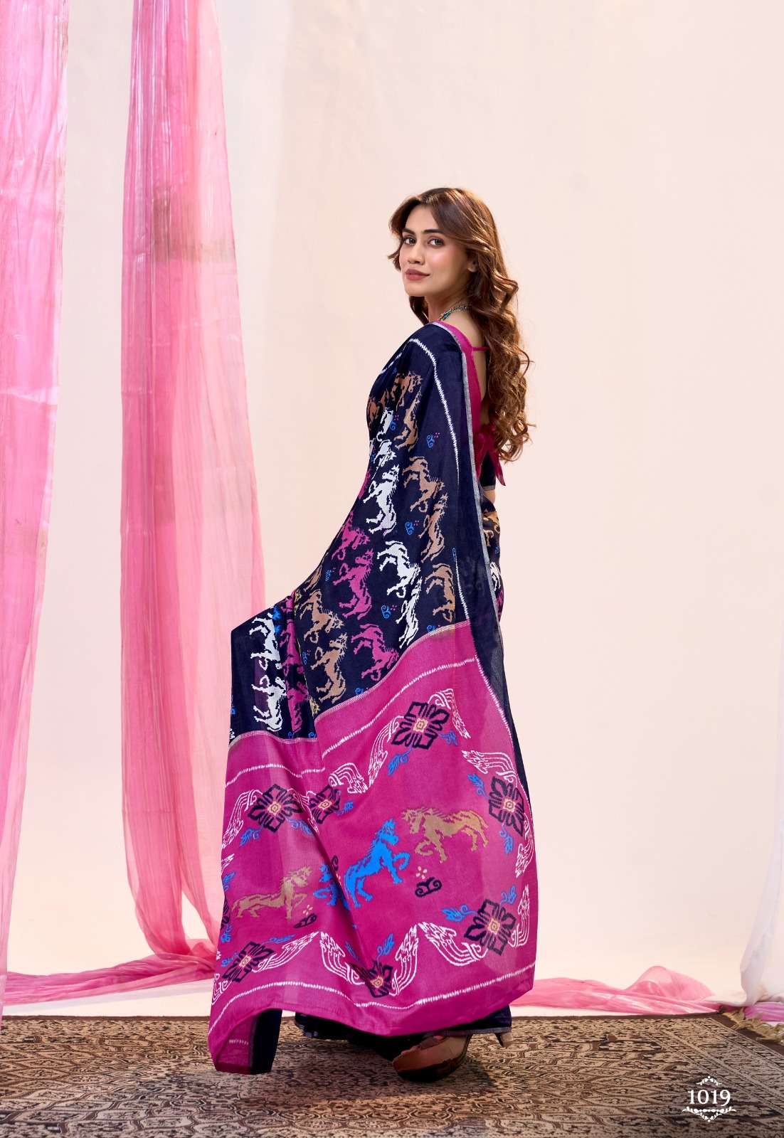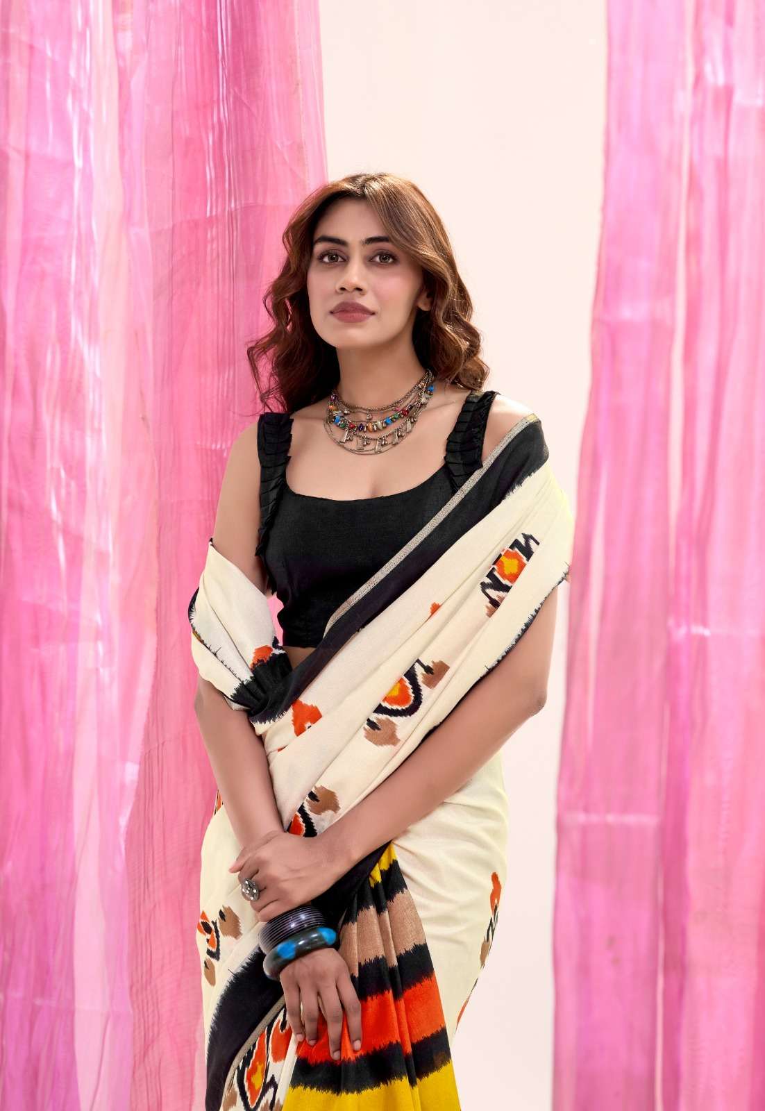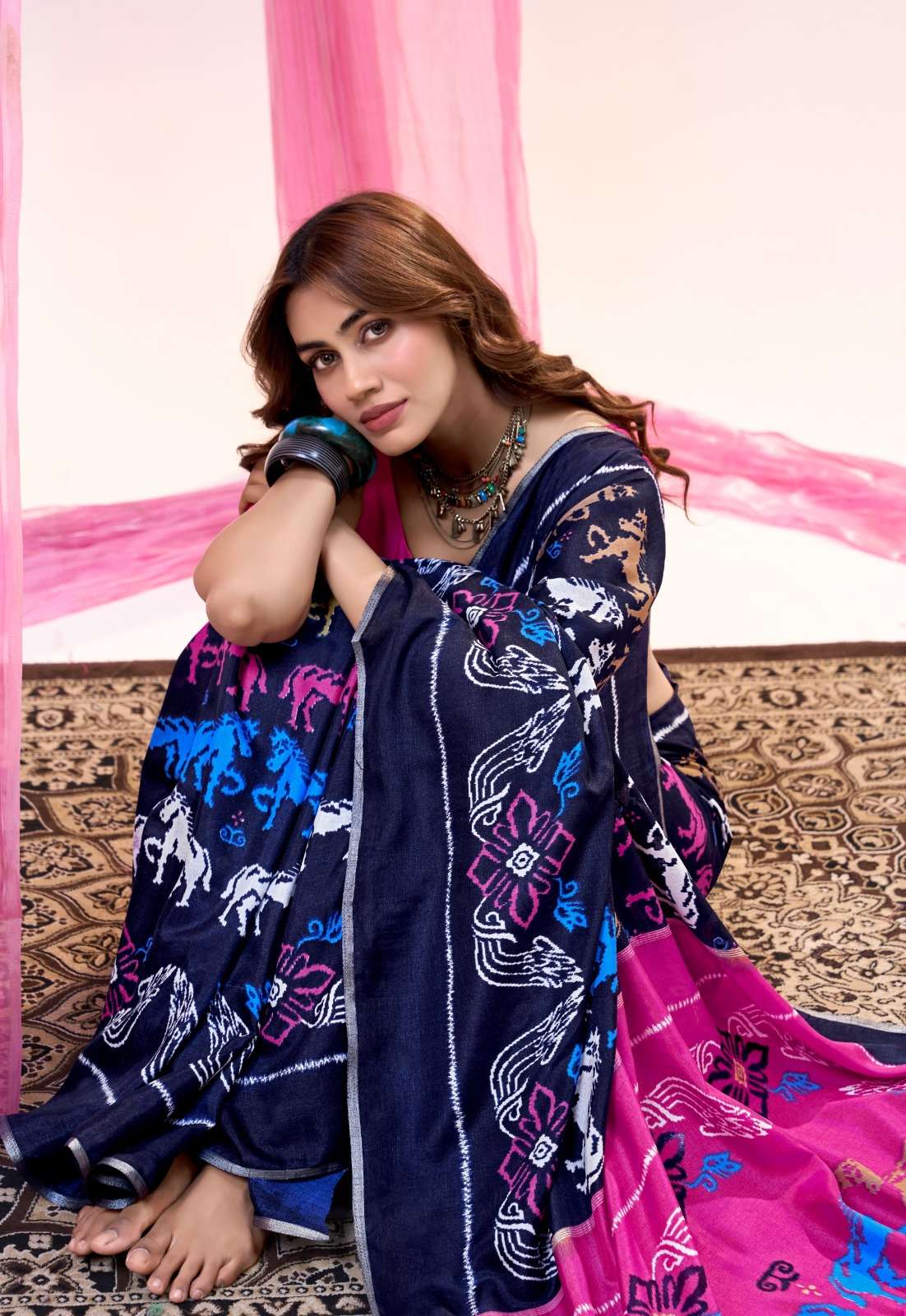 - Fabric: Soft Tusser with Super Ikkat Print & Zari Border - Catalog: Parnita-2