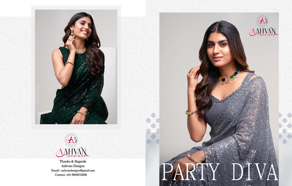 Party Diva By Aahvan Designs Premium Georgette Multi Sequins Saree Collection