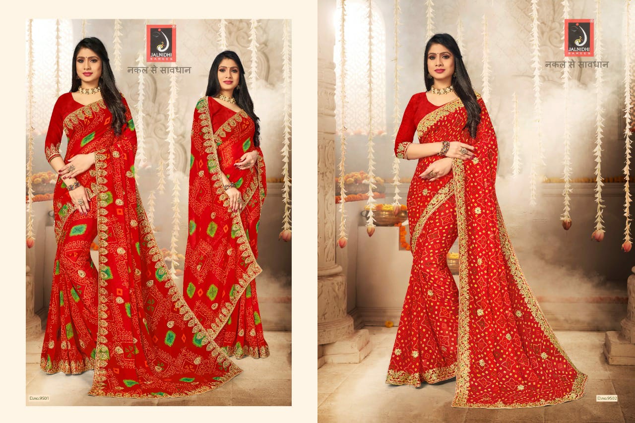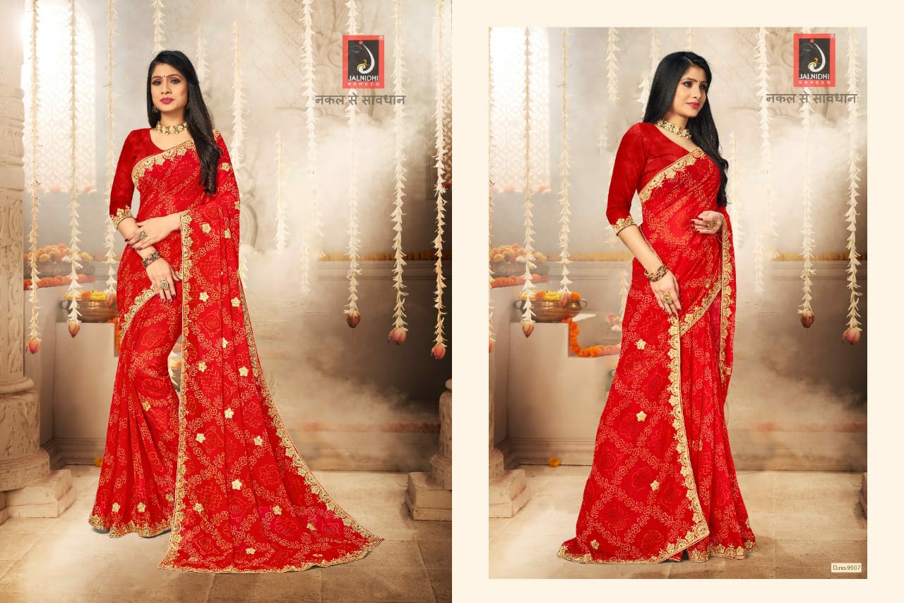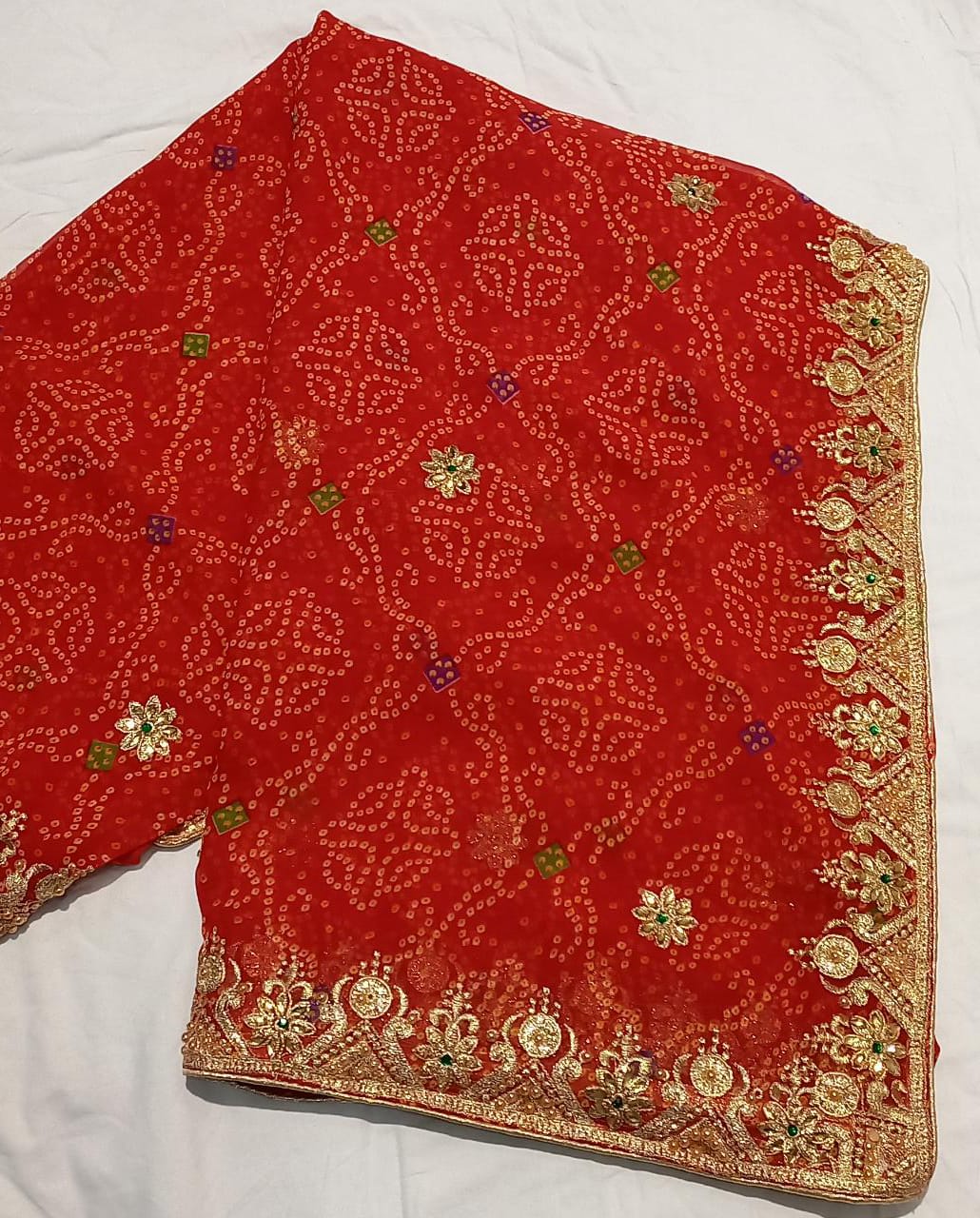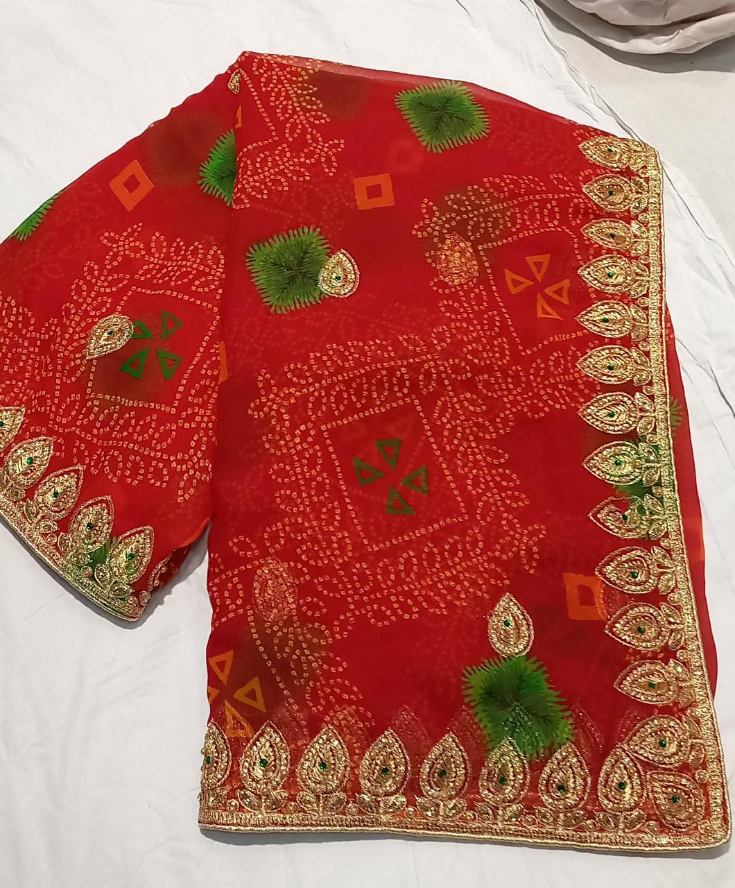 *NEW BRIGHT SINGLE RED HEAVY C-PALLU BANDHANI CATALOGUE WITH DIAMOND WORK ON IT* NAME - *PARVATI* PCS - *8 PCS* RATE - 790/- 5% GST SHIP EXTRA Singles available FABRICS - *HEAVY GORGET* 100+single |