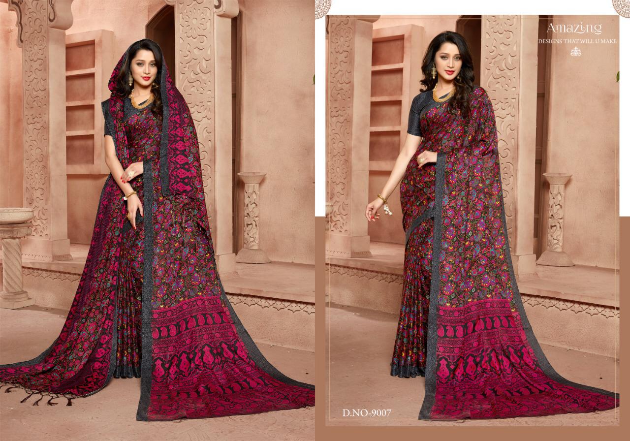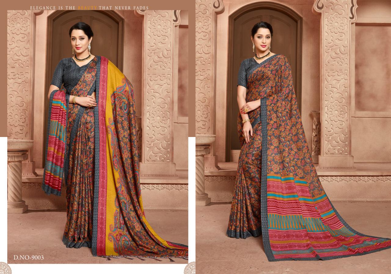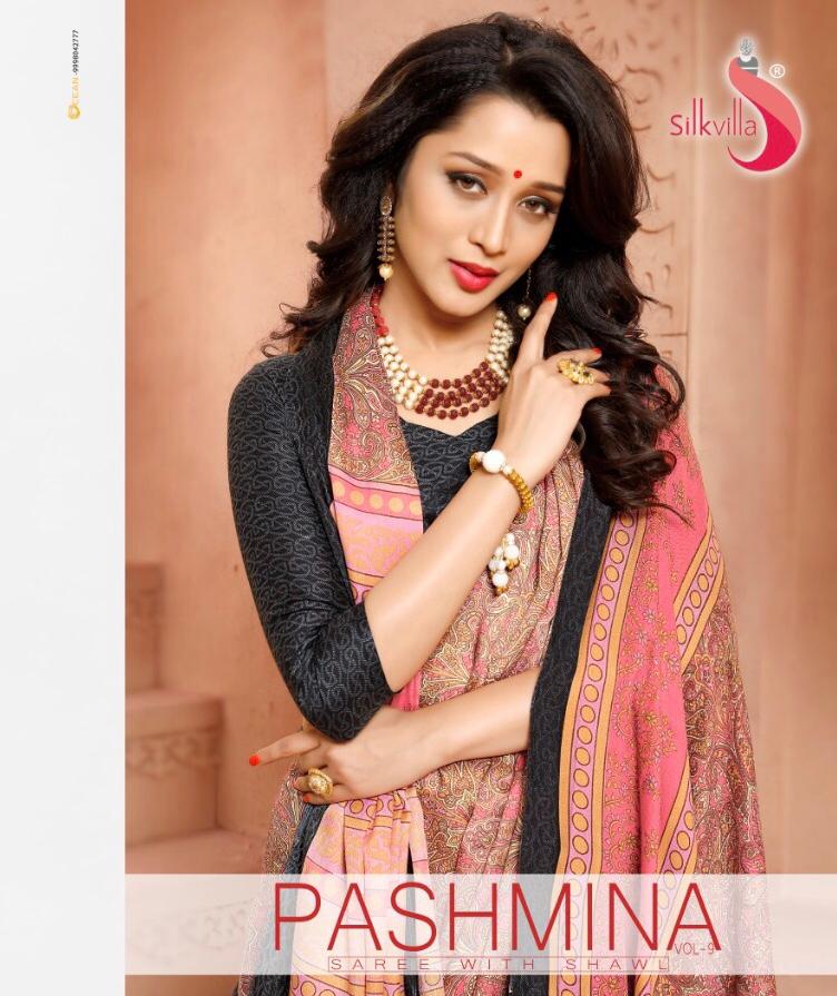 Buy Online Pashmina By Silk Villa 9001 Series Fancy Pashmina Printed Saree With Shawl Wholesaler Surat 7 Pcs of Full Catalogue at Wholesale Price. Looking for Pashmina By Silk Villa 9001 Series Fancy Pashmina Printed Saree With Shawl Wholesaler Surat Full Catalouge at Best Price? Buy Now Pashmina By Silk Villa 9001 Series Fancy Pashmina Printed Saree With Shawl Wholesaler Surat at Wholesale Rate of Rs 5425 with Total 7 Pcs from authroized dealer and supplier of SILK VILLA Brand. Cost of Each piece is just only Rs 775 which is very low and affordable price to resale the product in your retail store ,This is Surat based Wholesale Supplier & Dealer of SILK VILLA Brand. Click on Brand name to Know more about SILK VILLA Brand's products.Call or Whatsapp on 9898838984 for booking or enquiry