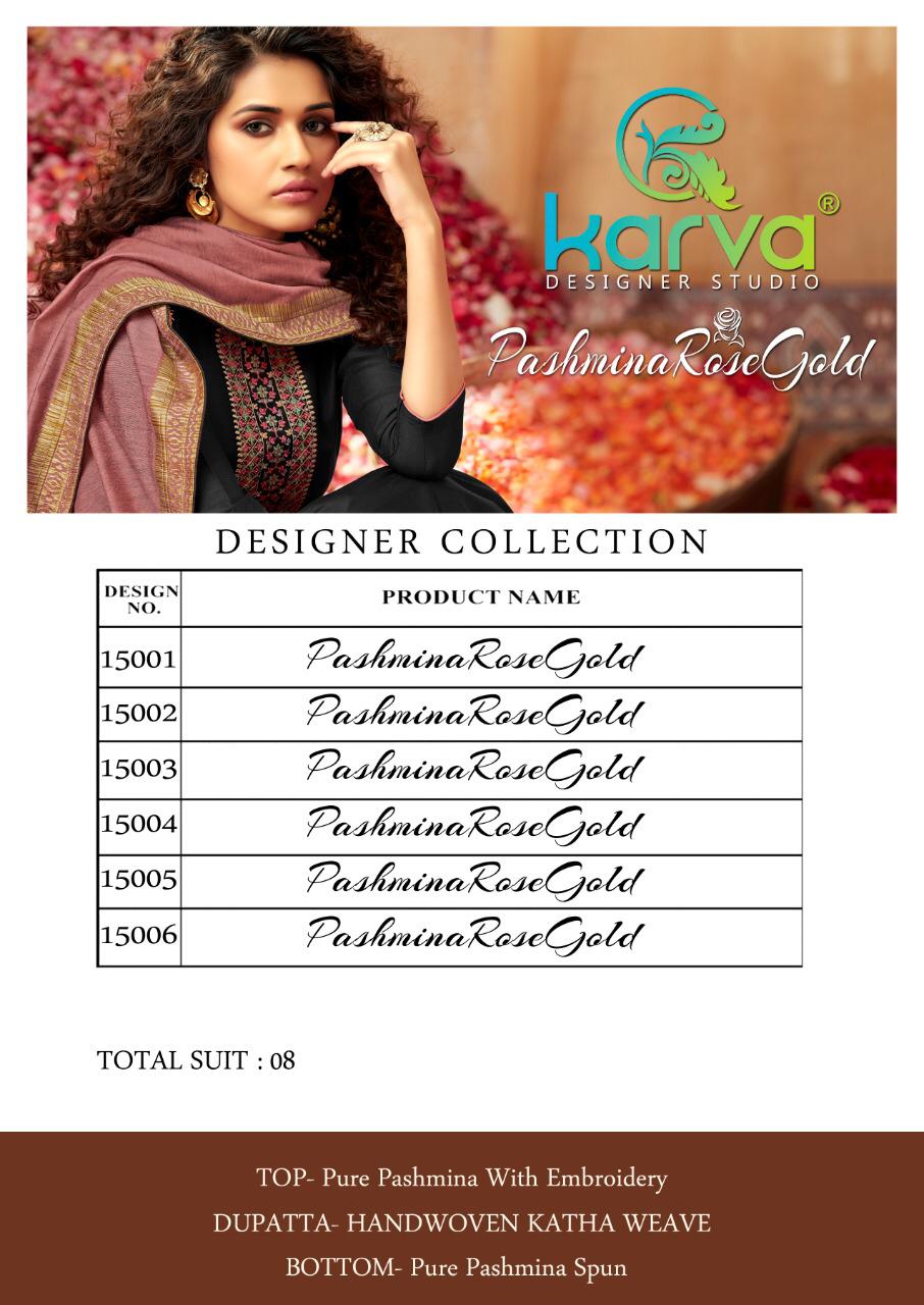 Buy Online Pashmina Rose Gold By Karva Pashmina Dress Materials Wholesale Supplier Gujarat 6 Pcs of Full Catalogue at Wholesale Price. Looking for Pashmina Rose Gold By Karva Pashmina Dress Materials Wholesale Supplier Gujarat Full Catalouge at Best Price? Buy Now Pashmina Rose Gold By Karva Pashmina Dress Materials Wholesale Supplier Gujarat at Wholesale Rate of Rs 6750 with Total 6 Pcs from authroized dealer and supplier of Brand. Cost of Each piece is just only Rs 1125 which is very low and affordable price to resale the product in your retail store ,This is Surat based Wholesale Supplier & Dealer of Brand. Click on Brand name to Know more about Brand's products.Call or Whatsapp on 9898838984 for booking or enquiry