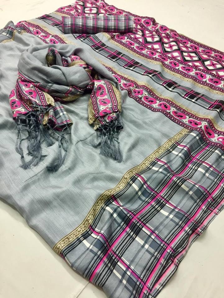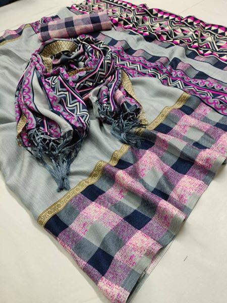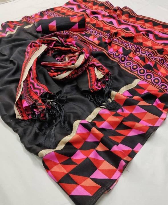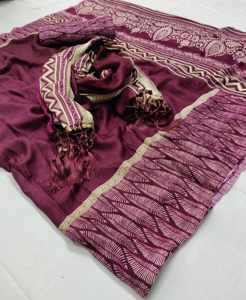 Brand - LT. Type - Saree. Pashmina silk 02 Rate 755 per Pcs . Set To Set . GST 5 Percent Extra. Delivery 2 days Total 10 Pcs in set Fabrics = pashmina silk with dupatta |