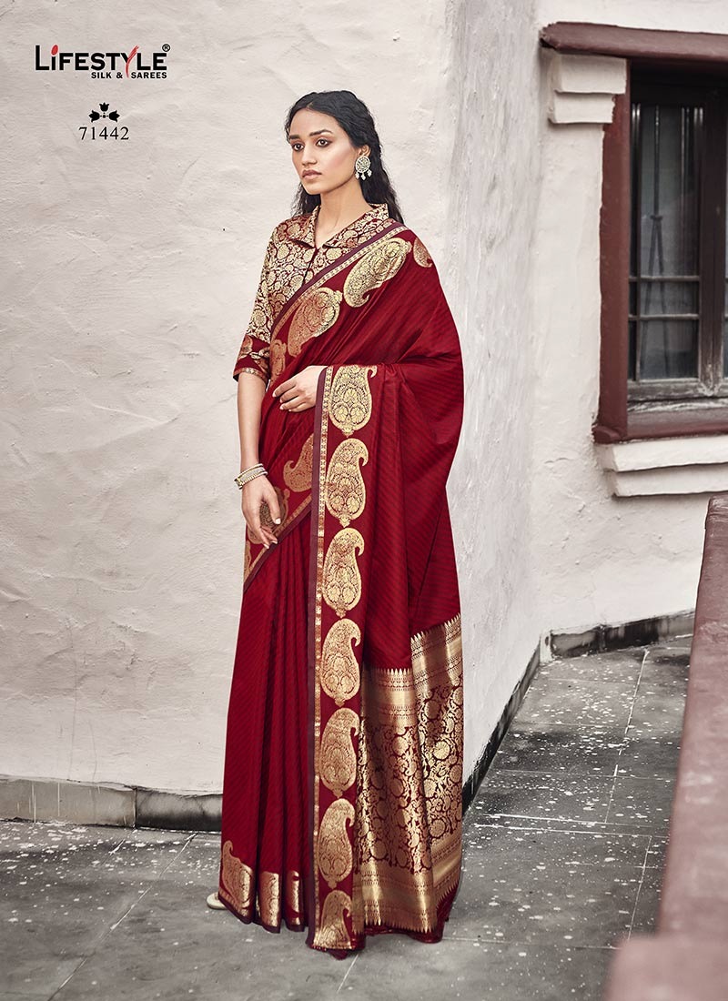 Brand - Lifestyle. Catalog :- PASHMINA Volume :- 1 Fabric :- LICHI SILK RICH PALLU Packing :- BOX Price :- 1083 per pcs . Set to set Cut/Length :- 6.3 FANCY LICHI SILK JAQUARD BORDER PACKING - IN THIS WEEK |