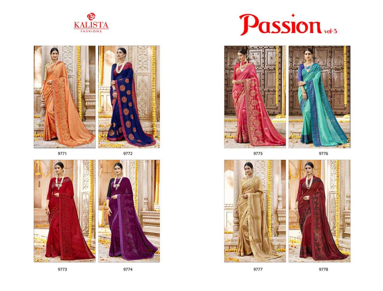 Passion Vol 3 By Kalista 9771 Series Fancy Party Wear Saree Collection Wholesaler Surat