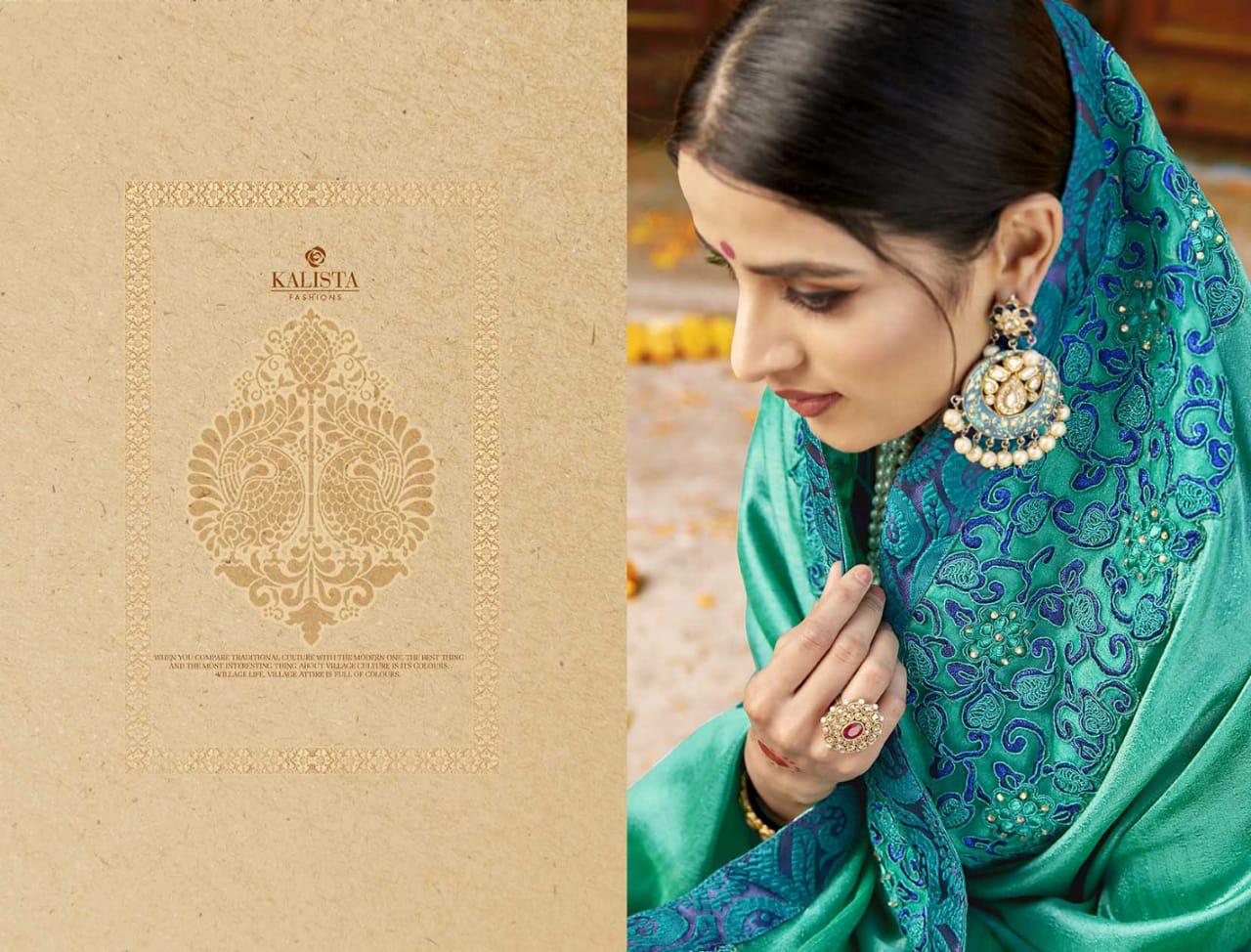 Brand - Kalista . Catlog name - PASSION VOL-3. Rangoli and Georgette Fabric. Rate -850 per pcs . Set To Set. GST 5 Percent Extra. Delivery 2 days . |