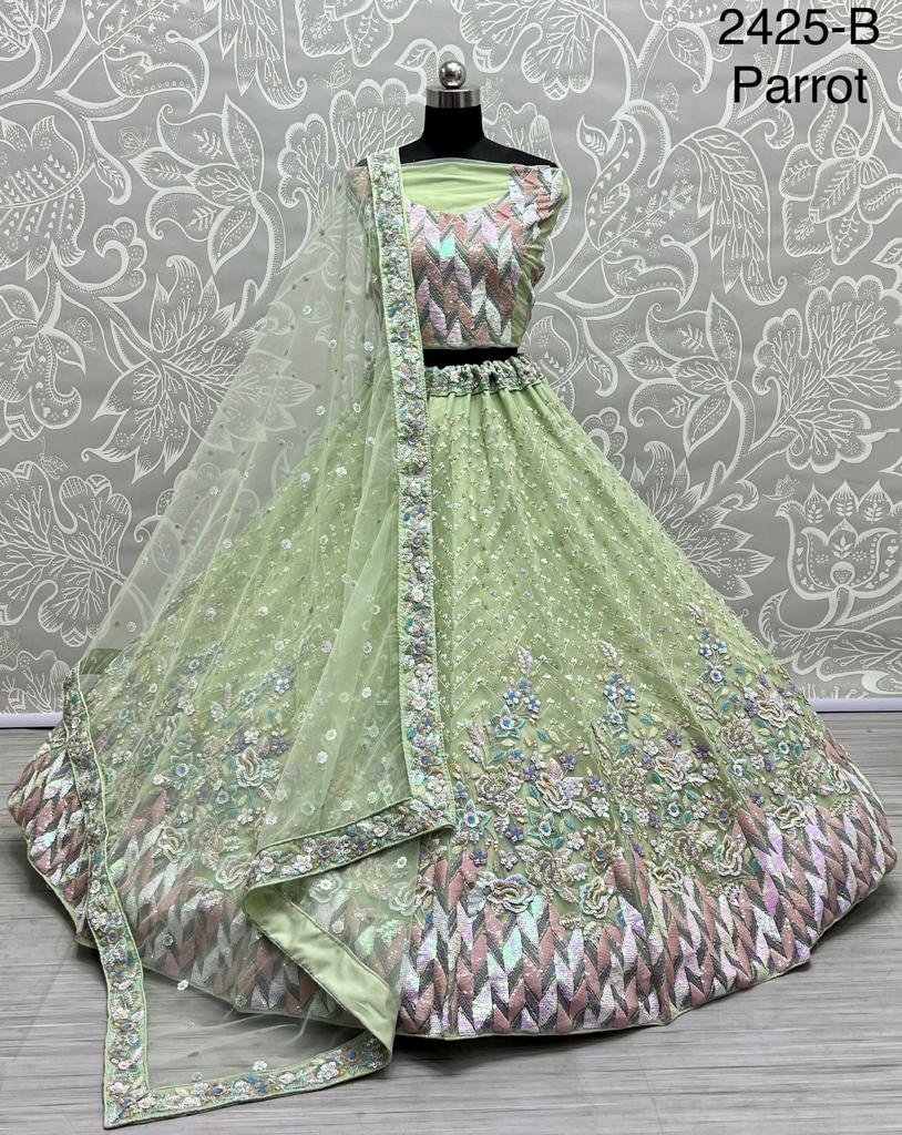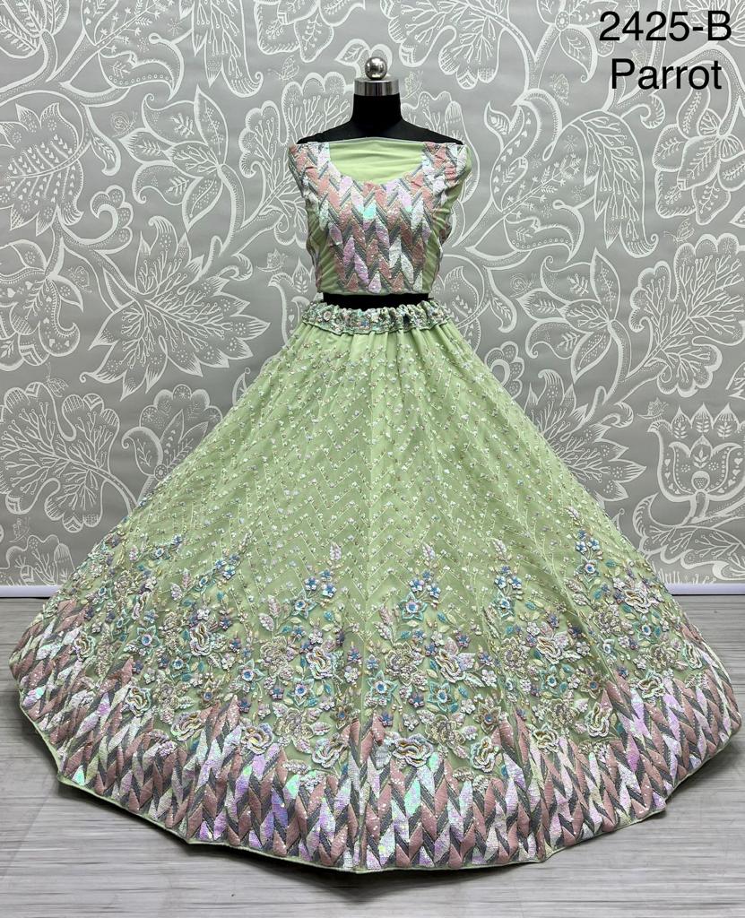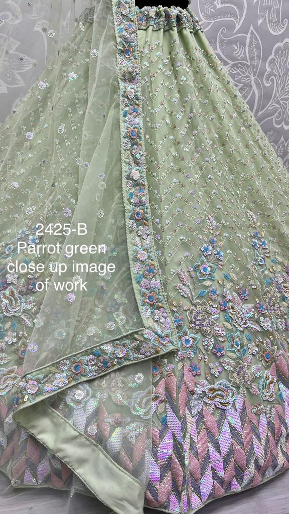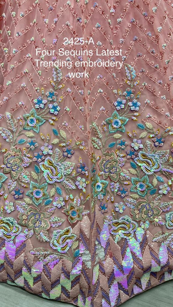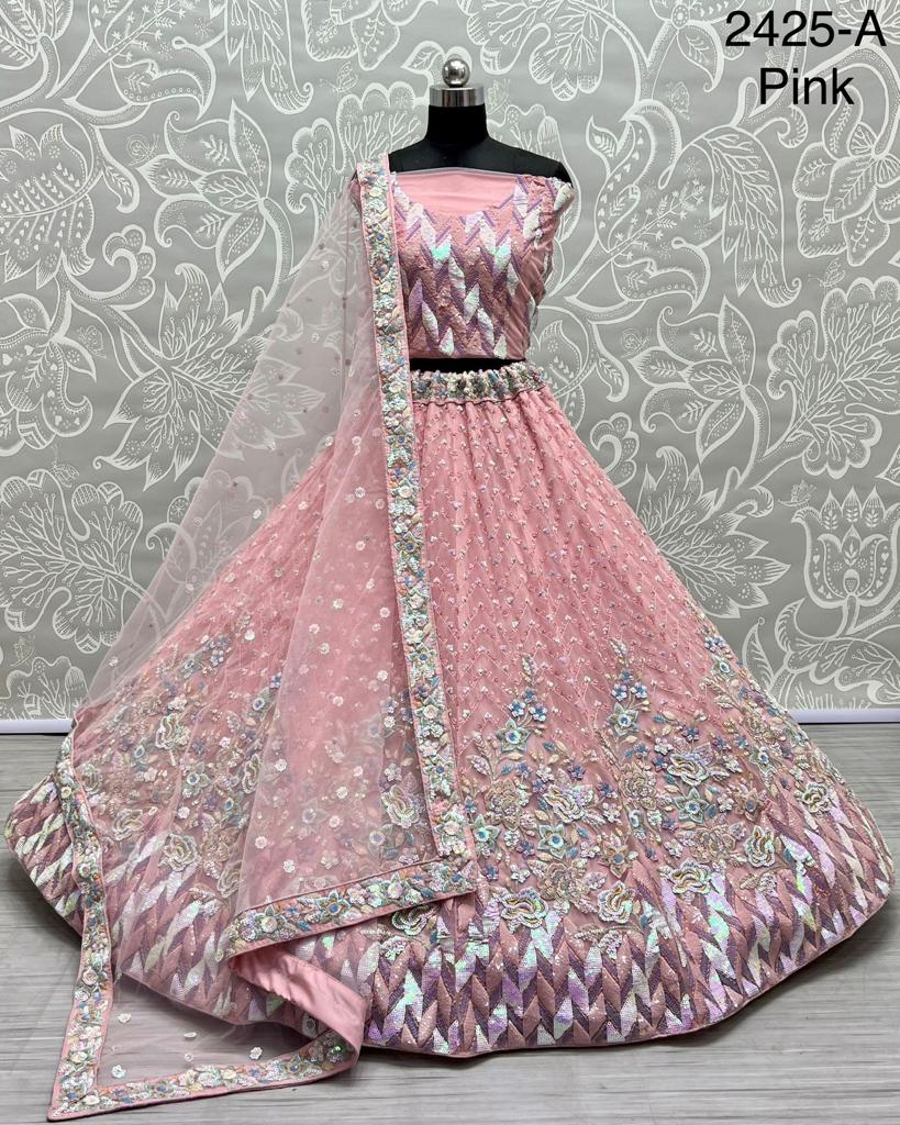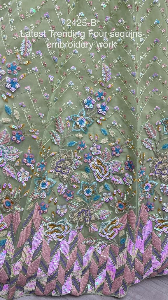 Pastel Color 2425 Fancy Four Sequins Embroidered Designer Lehengacholi