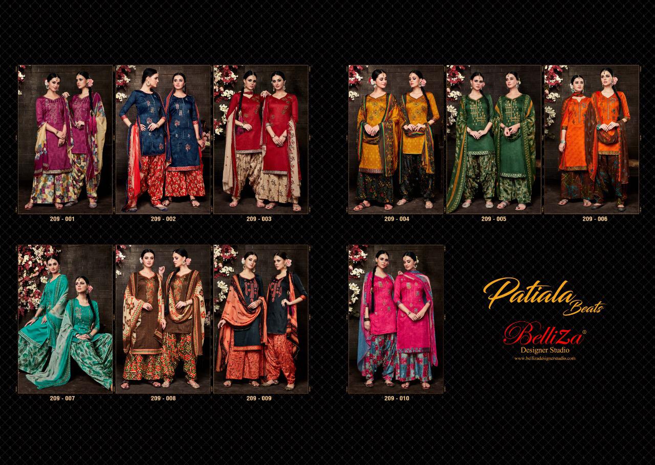 Buy Online Patiala Beats By Belliza Designer Studio 209001 Series Fancy Pure Jam Satin Printed Patiala Suit Collection Wholesaler Surat 10 Pcs of Full Catalogue at Wholesale Price. Looking for Patiala Beats By Belliza Designer Studio 209001 Series Fancy Pure Jam Satin Printed Patiala Suit Collection Wholesaler Surat Full Catalouge at Best Price? Buy Now Patiala Beats By Belliza Designer Studio 209001 Series Fancy Pure Jam Satin Printed Patiala Suit Collection Wholesaler Surat at Wholesale Rate of Rs 6950 with Total 10 Pcs from authroized dealer and supplier of Belliza Designer studio Brand. Cost of Each piece is just only Rs 695 which is very low and affordable price to resale the product in your retail store ,This is Surat based Wholesale Supplier & Dealer of Belliza Designer studio Brand. Click on Brand name to Know more about Belliza Designer studio Brand's products.Call or Whatsapp on 9898838984 for booking or enquiry