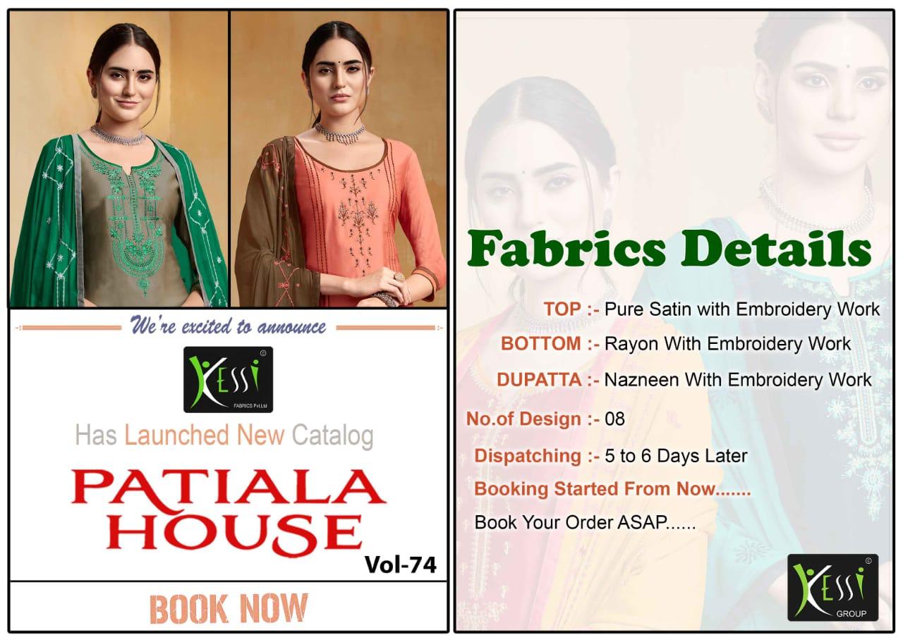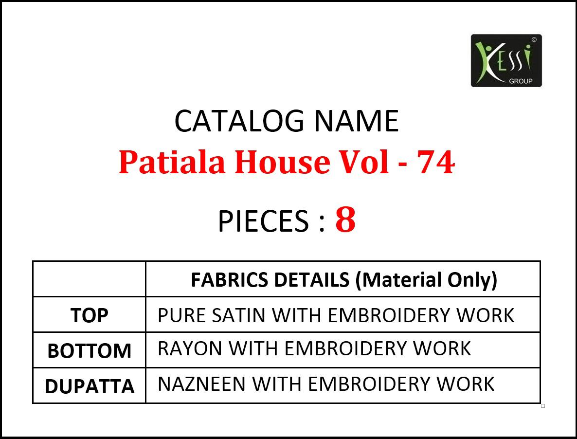Buy Online Patiala House Vol 74 By Kessi Satin Embroidered Dress Materials Wholesale Supplier Surat 8 Pcs of Full Catalogue at Wholesale Price. Looking for Patiala House Vol 74 By Kessi Satin Embroidered Dress Materials Wholesale Supplier Surat Full Catalouge at Best Price? Buy Now Patiala House Vol 74 By Kessi Satin Embroidered Dress Materials Wholesale Supplier Surat at Wholesale Rate of Rs 6392 with Total 8 Pcs from authroized dealer and supplier of KESSI Brand. Cost of Each piece is just only Rs 799 which is very low and affordable price to resale the product in your retail store ,This is Surat based Wholesale Supplier & Dealer of KESSI Brand. Click on Brand name to Know more about KESSI Brand's products.Call or Whatsapp on 9898838984 for booking or enquiry