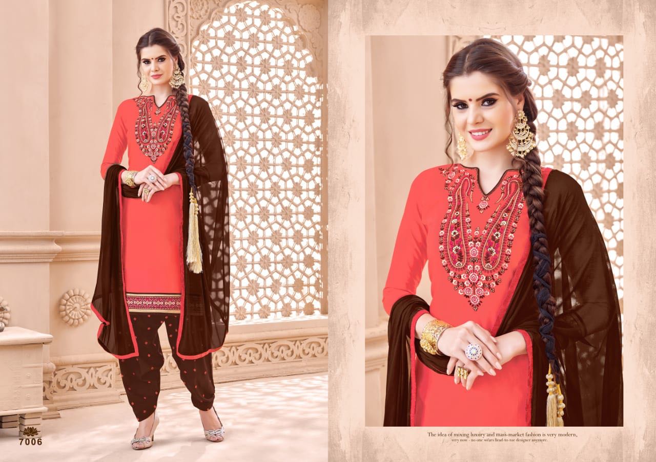 SMF Thanks for your love ? and support ? Presenting our new catalogue *?PATIYALA SILK?...* ?Quality Fabrics.... ?Best Designs.... ?Latest Colours.... ?Rich Combinations.... @ unbelievable price, Fabric Details:- ? Top :-Gless Cotton ? Bot :-pureCotton with work (Patiyala 3mtr) ??Dup :-Pure naznin ? Rate :- 7?1?5? ?DESIGN:-. 1?2? Have a look to this awesome catalogue & book your orders... Always with |