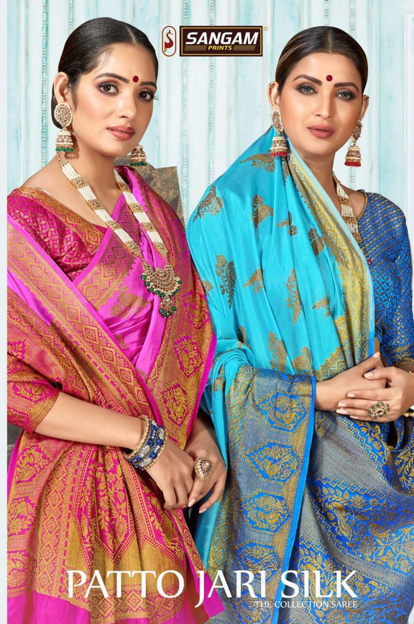 Brand - Sangam . Catlog name -PATOLA JARO SILK Rate -1020 per pcs . Fabric- Nylon Row silk . Set To Set . GST 5 Percent Extra. Delivery- Today |