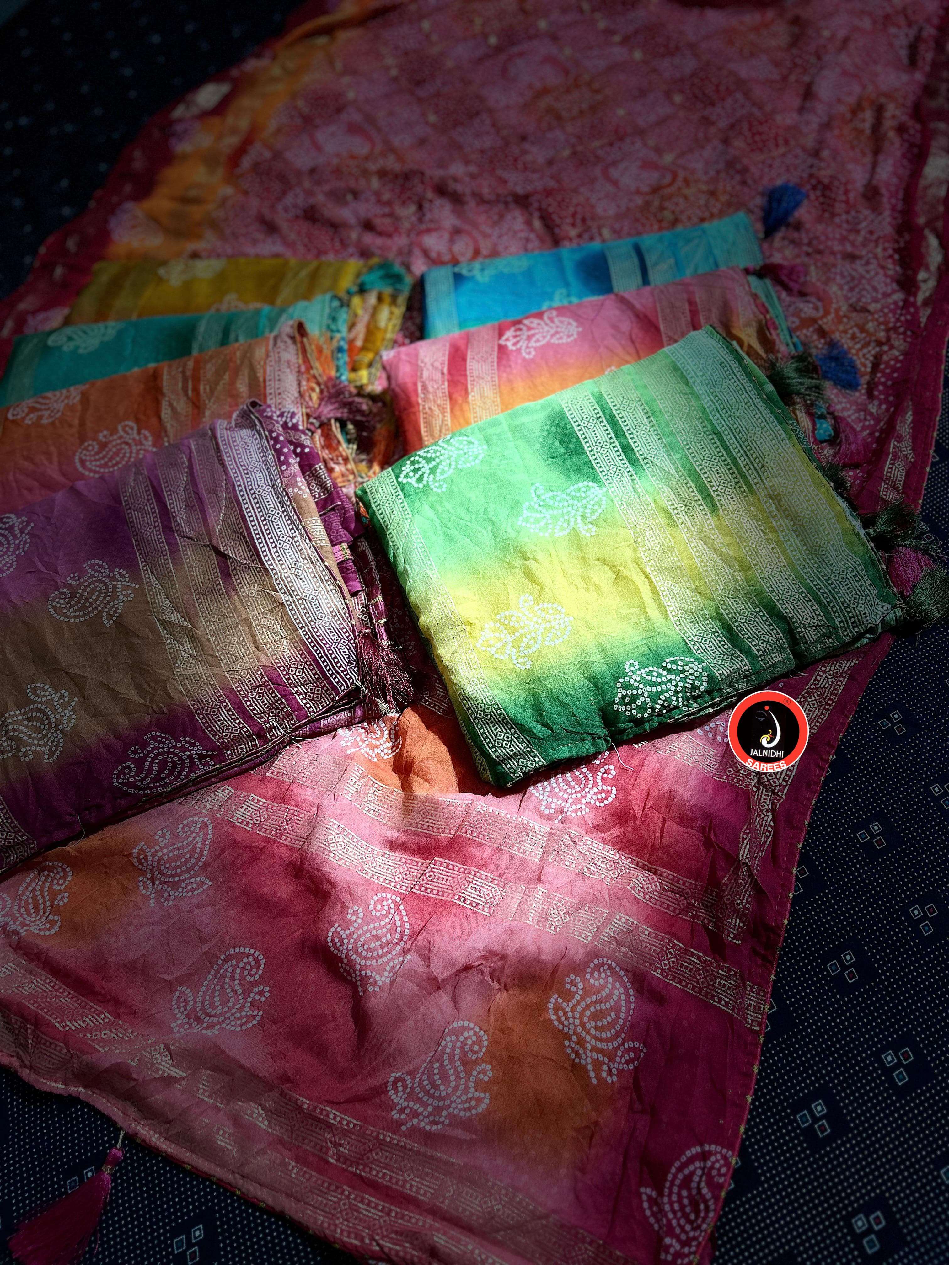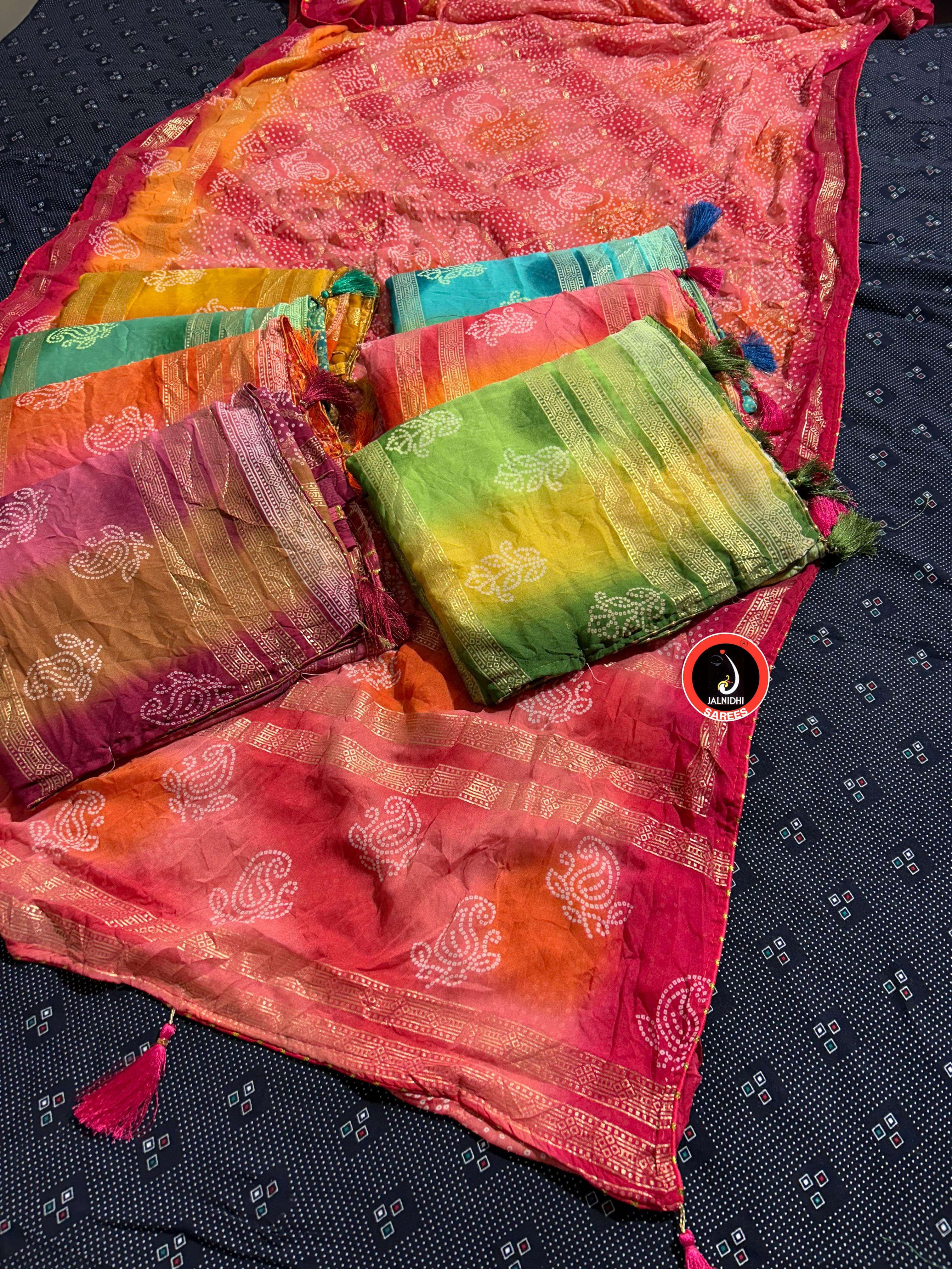 *NEW FANCY COLOUR BANDHANI CATALOUGE WITH MILL FOIL & PALLU TASSELS*