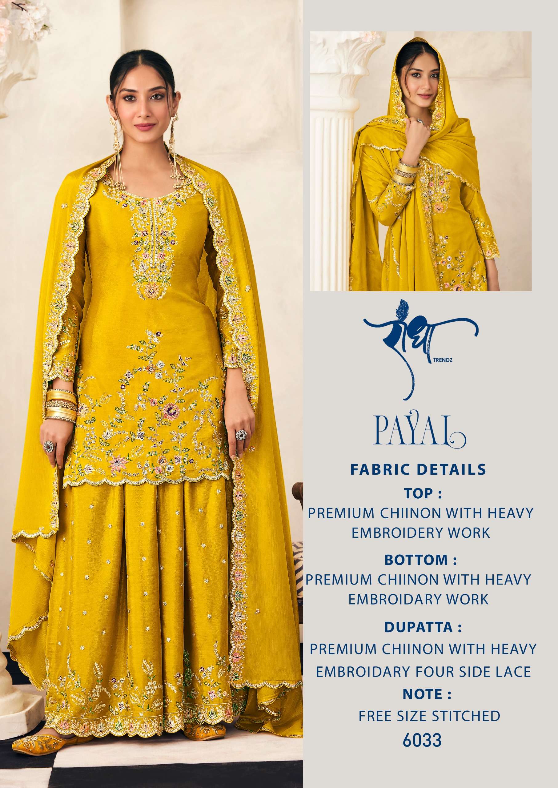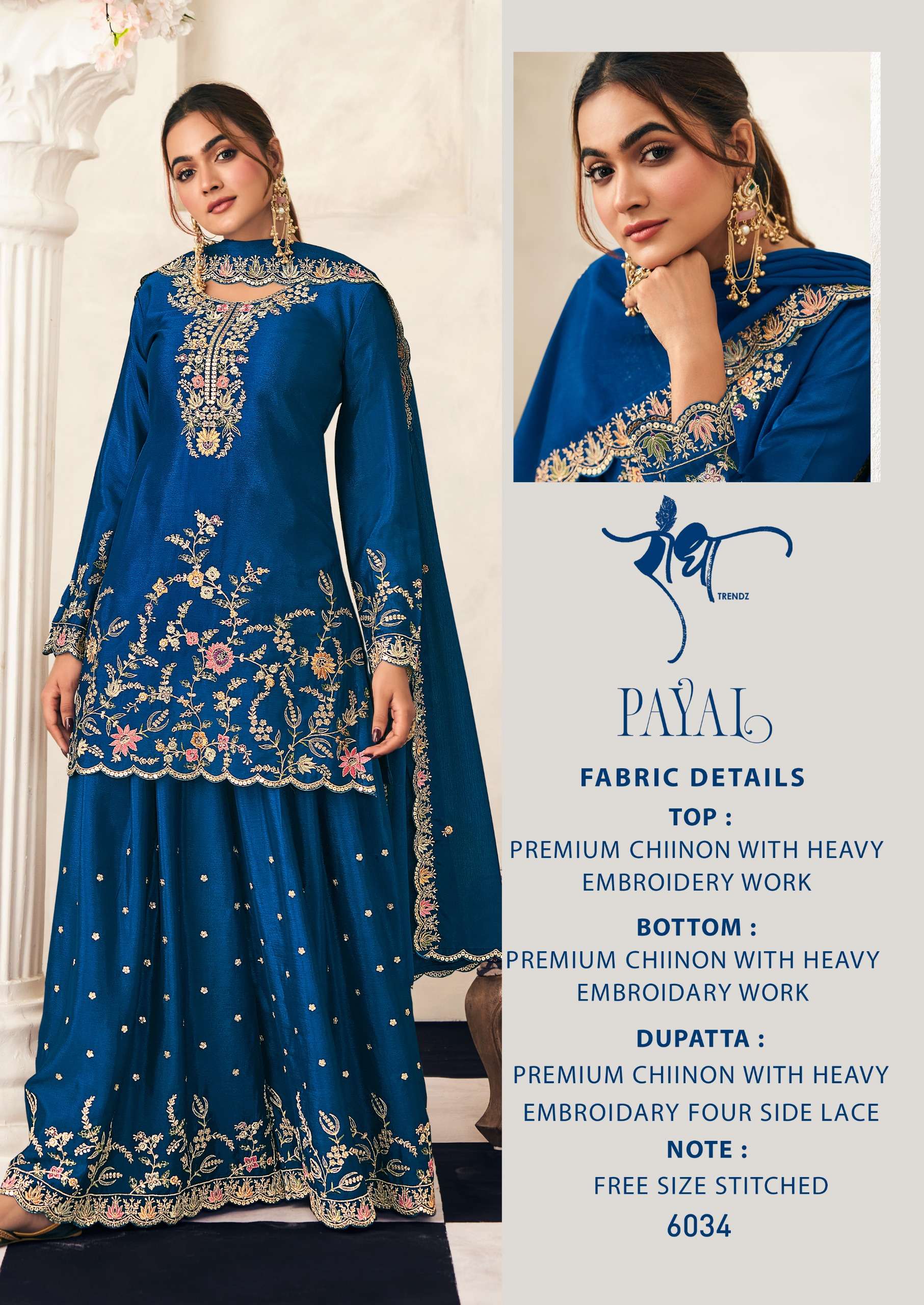 Buy Online PAYAL by RADHA TRENDZ Suit collection manufacturers surat 4 Pcs of Full Catalogue at Wholesale Price. Looking for PAYAL by RADHA TRENDZ Suit collection manufacturers surat Full Catalouge at Best Price? Buy Now PAYAL by RADHA TRENDZ Suit collection manufacturers surat at Wholesale Rate of Rs 9980 with Total 4 Pcs from authroized dealer and supplier of Radha Trendz Brand. Cost of Each piece is just only Rs 2495 which is very low and affordable price to resale the product in your retail store ,This is Surat based Wholesale Supplier & Dealer of Radha Trendz Brand. Click on Brand name to Know more about Radha Trendz Brand's products.Call or Whatsapp on 9898838984 for booking or enquiry