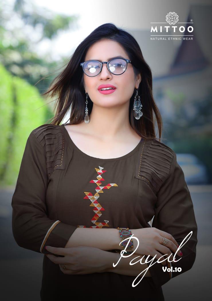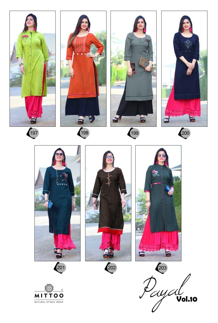 Payal Vol 10 By Mittoo 197 Series Fancy Designer Reyon Kurti Catlog Wholesaler Surat
