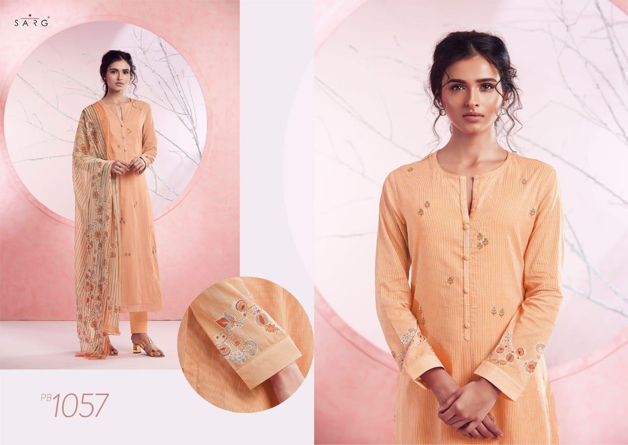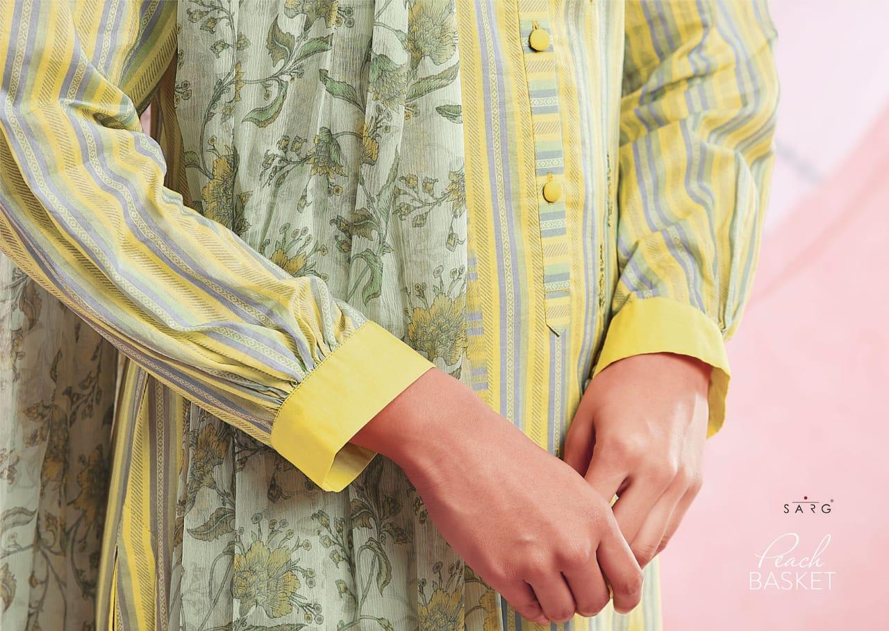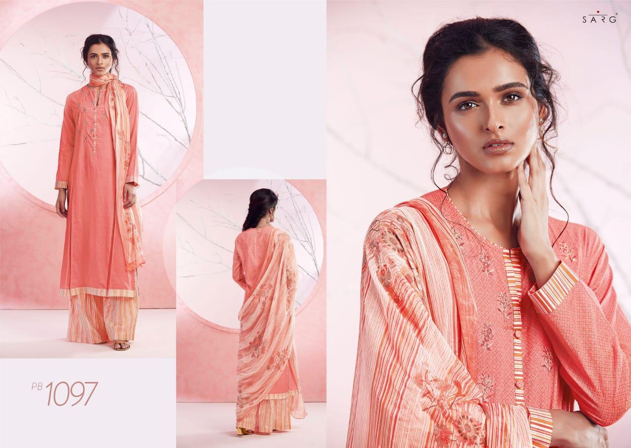 Buy Online Peach Basket By Sarg Lawn Cotton Embroidered Suits Wholesale Supplier Surat 12 Pcs of Full Catalogue at Wholesale Price. Looking for Peach Basket By Sarg Lawn Cotton Embroidered Suits Wholesale Supplier Surat Full Catalouge at Best Price? Buy Now Peach Basket By Sarg Lawn Cotton Embroidered Suits Wholesale Supplier Surat at Wholesale Rate of Rs 19140 with Total 12 Pcs from authroized dealer and supplier of SARG Brand. Cost of Each piece is just only Rs 1595 which is very low and affordable price to resale the product in your retail store ,This is Surat based Wholesale Supplier & Dealer of SARG Brand. Click on Brand name to Know more about SARG Brand's products.Call or Whatsapp on 9898838984 for booking or enquiry