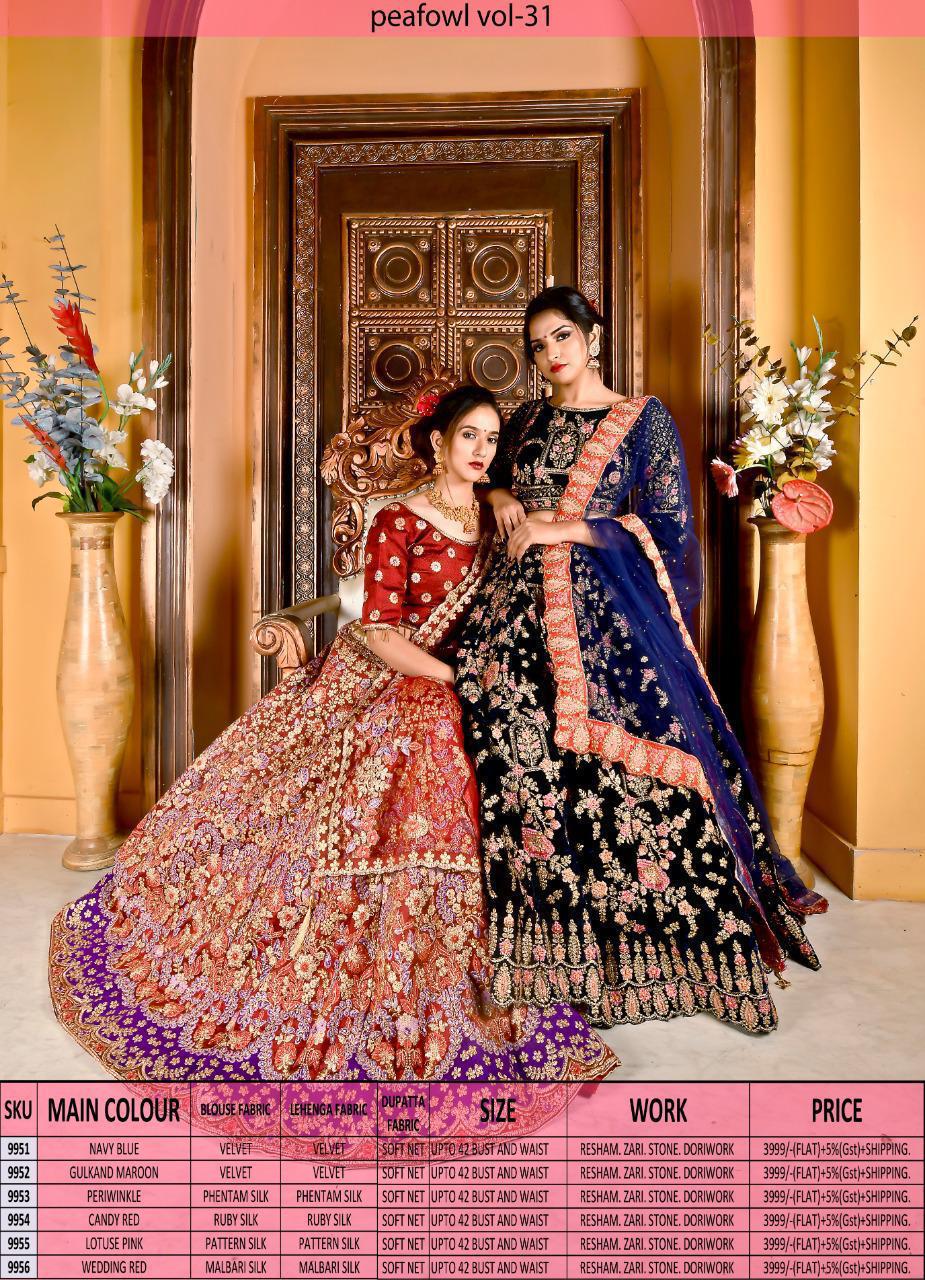 Peafowl Vol 31 Series 9951 To 9956 Bridal Lehngas Wholesale Supplier And Dealer Surat