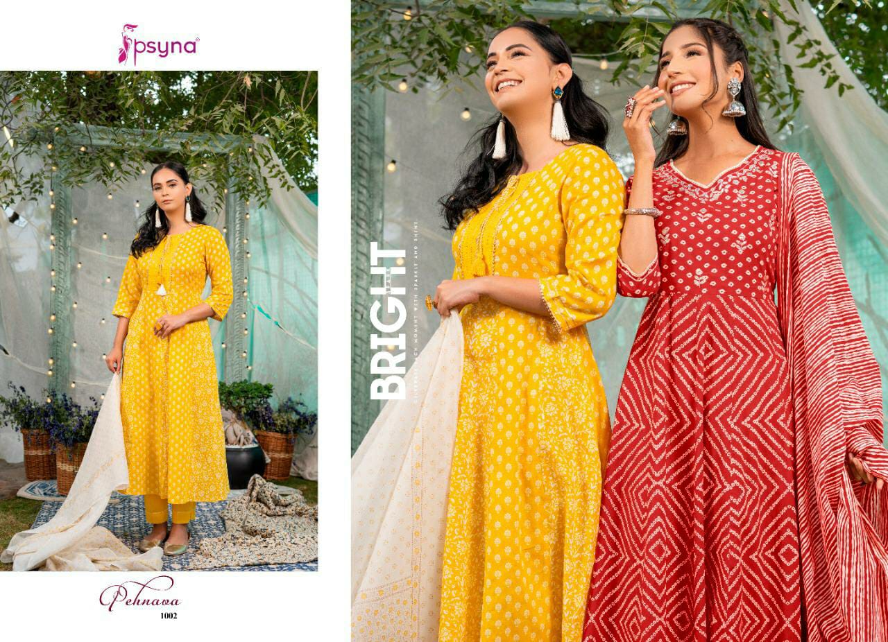Buy Online Pehnava Kurti Bottom With Dupatta By Psyna Dealer And Exporter Surat 6 Pcs of Full Catalogue at Wholesale Price. Looking for Pehnava Kurti Bottom With Dupatta By Psyna Dealer And Exporter Surat Full Catalouge at Best Price? Buy Now Pehnava Kurti Bottom With Dupatta By Psyna Dealer And Exporter Surat at Wholesale Rate of Rs 8394 with Total 6 Pcs from authroized dealer and supplier of PSYNA Brand. Cost of Each piece is just only Rs 1399 which is very low and affordable price to resale the product in your retail store ,This is Surat based Wholesale Supplier & Dealer of PSYNA Brand. Click on Brand name to Know more about PSYNA Brand's products.Call or Whatsapp on 9898838984 for booking or enquiry