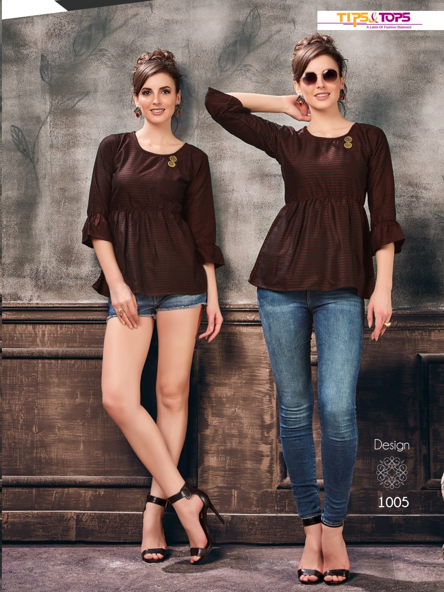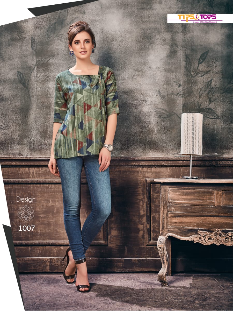 Buy Online Peony By Tips N Tops 1001 Series Designer Reyon Printed Kurti Collection Wholesaler Surat 9 Pcs of Full Catalogue at Wholesale Price. Looking for Peony By Tips N Tops 1001 Series Designer Reyon Printed Kurti Collection Wholesaler Surat Full Catalouge at Best Price? Buy Now Peony By Tips N Tops 1001 Series Designer Reyon Printed Kurti Collection Wholesaler Surat at Wholesale Rate of Rs 3285 with Total 9 Pcs from authroized dealer and supplier of Brand. Cost of Each piece is just only Rs 365 which is very low and affordable price to resale the product in your retail store ,This is Surat based Wholesale Supplier & Dealer of Brand. Click on Brand name to Know more about Brand's products.Call or Whatsapp on 9898838984 for booking or enquiry