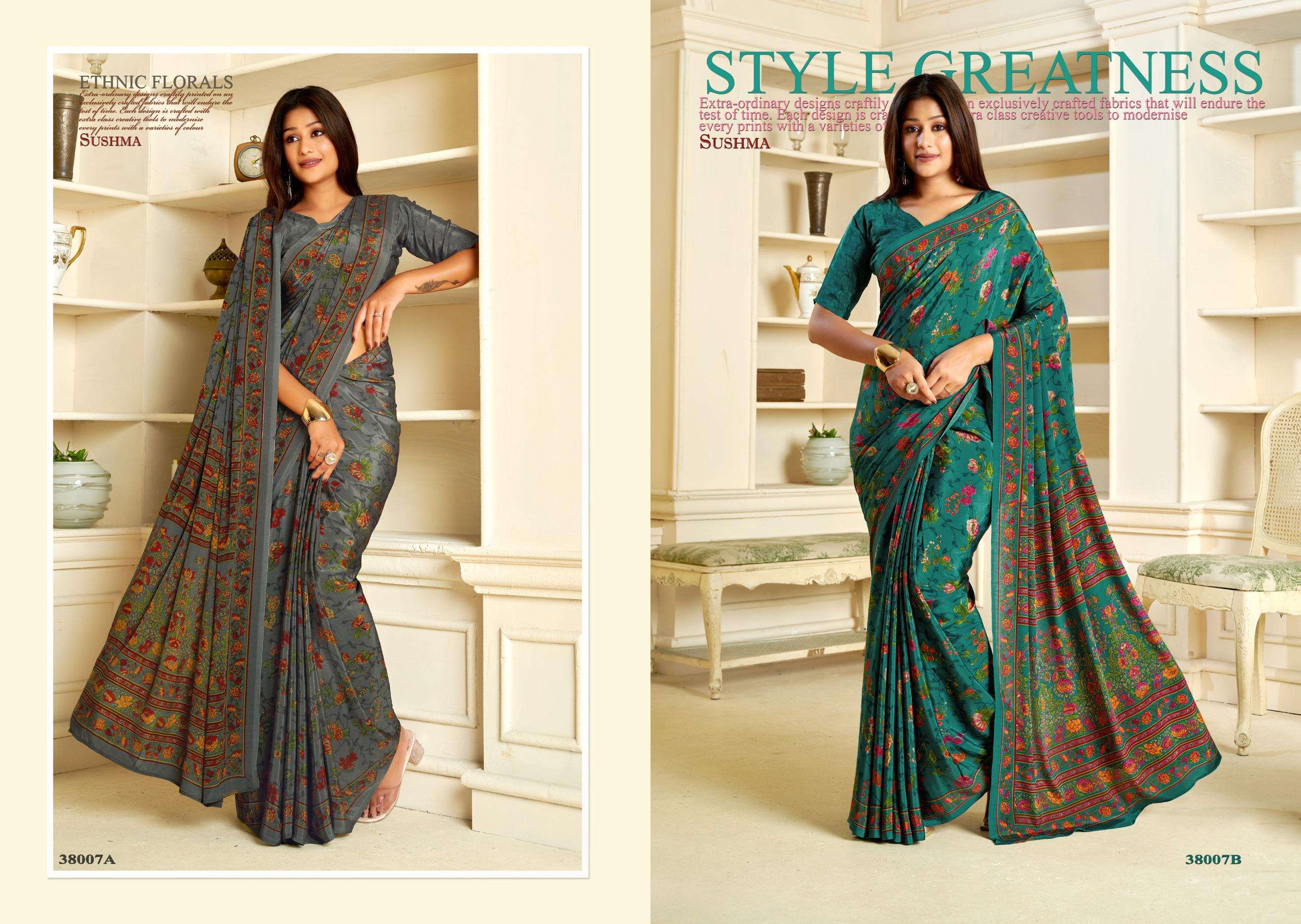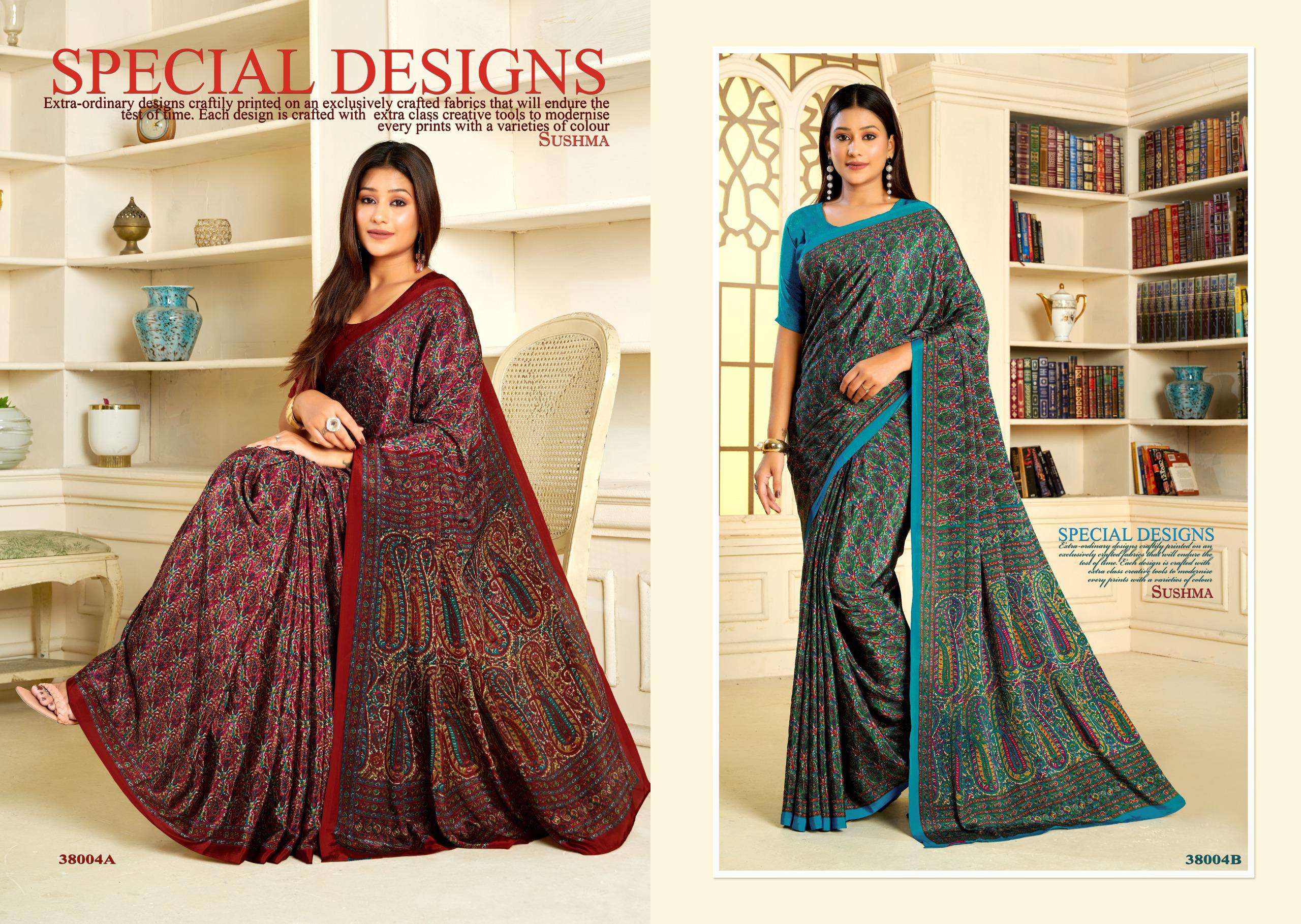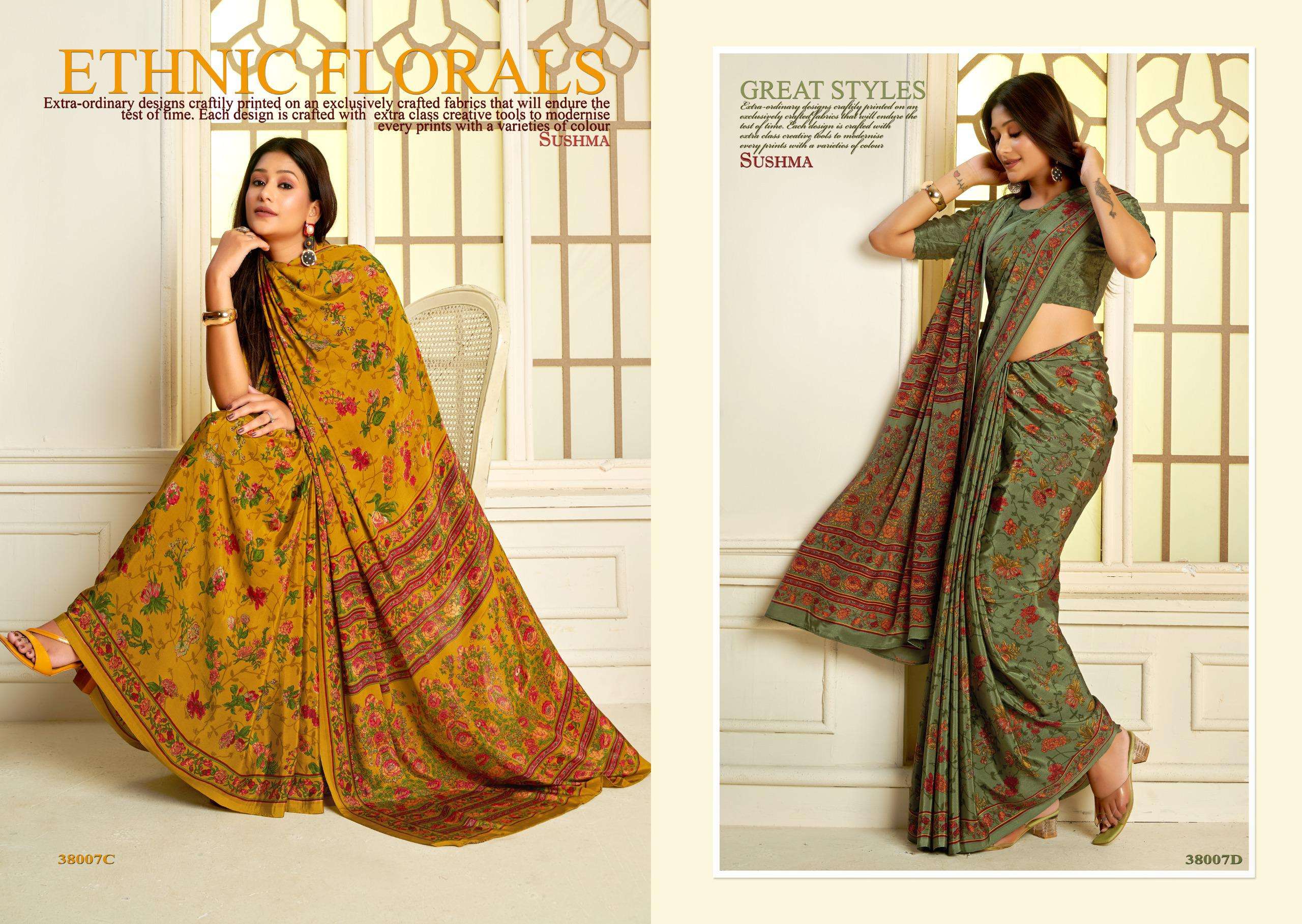 Buy Online PERFECT PRINT by Sushma saree collection manufacturer surat 16 Pcs of Full Catalogue at Wholesale Price. Looking for PERFECT PRINT by Sushma saree collection manufacturer surat Full Catalouge at Best Price? Buy Now PERFECT PRINT by Sushma saree collection manufacturer surat at Wholesale Rate of Rs 9200 with Total 16 Pcs from authroized dealer and supplier of SUSHMA Brand. Cost of Each piece is just only Rs 575 which is very low and affordable price to resale the product in your retail store ,This is Surat based Wholesale Supplier & Dealer of SUSHMA Brand. Click on Brand name to Know more about SUSHMA Brand's products.Call or Whatsapp on 9898838984 for booking or enquiry