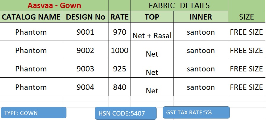 Phantom by aasvaa ready made net designer party wear gowns Price list attached Gst extra order and inquiry +919898838984 |
