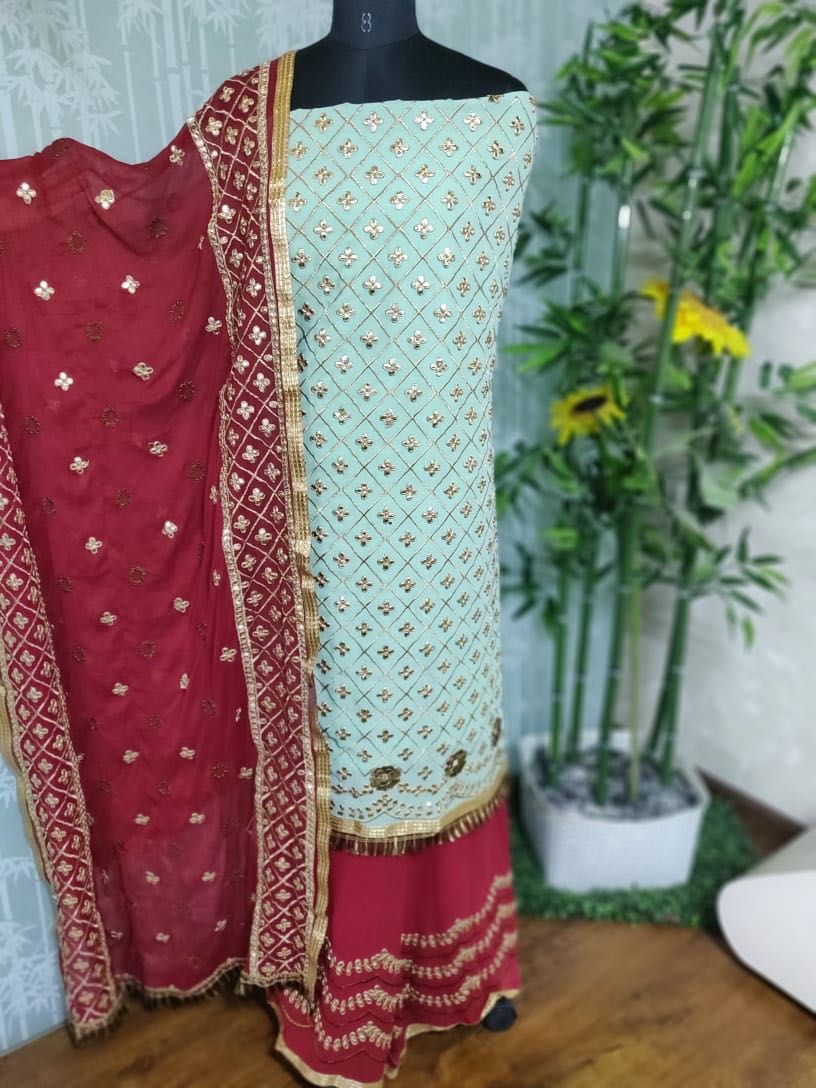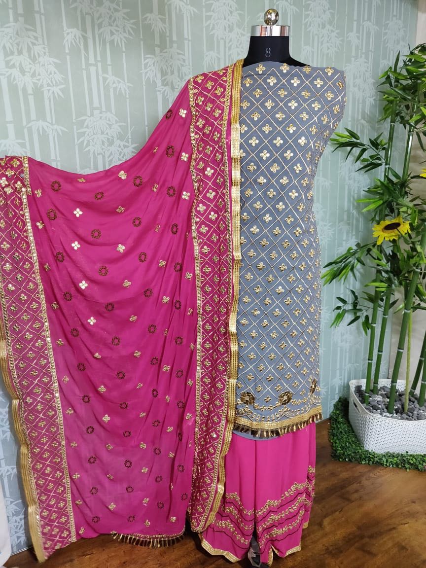 ||OM SHREE GANESHAY NAMAH|| *" Kesari Exports"* We are presenting Phillauri Vol - 10 after the Great Success of Phillauri Vol-9. New Stylish *Gota Patti Plazzo Suit* with *Heavy Gota Patti Contrast Dupatta and Bottom Concept*. Catalog------Phillauri Vol - 10 Fabrics----- ? Top - Georgette ? Bottom - Georgette ?Dupatta - Nazneen Rate--1895/- + 5% GST Extra TypeÂ? *Top* - *Unstitch* *Plazzo* - *Stitched* Dispatching Starts from----21-09-2018 ???????????? |