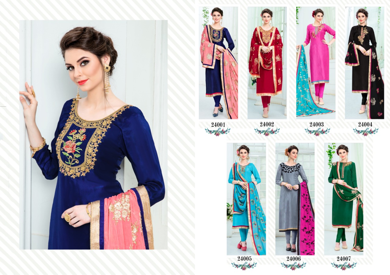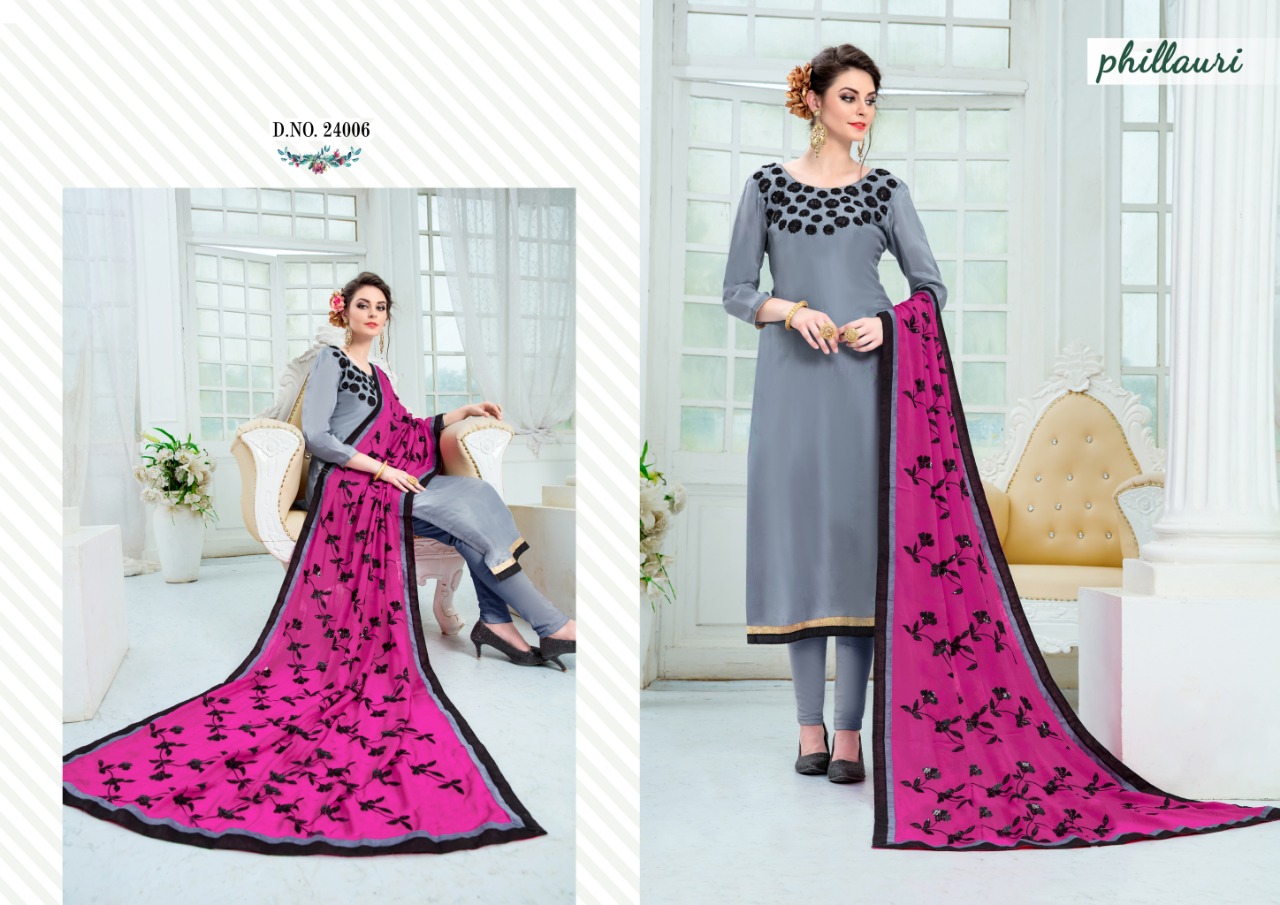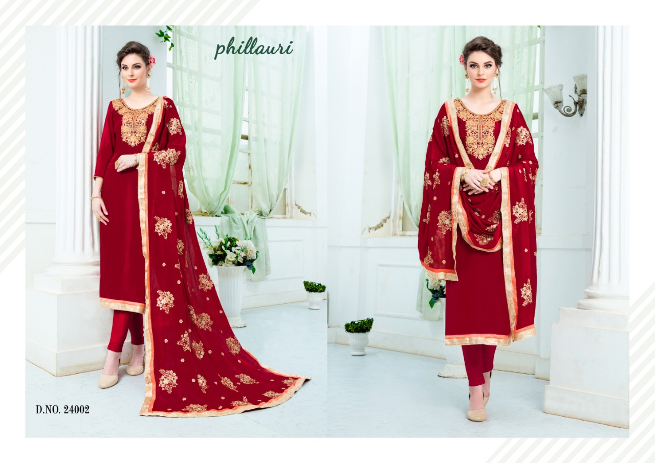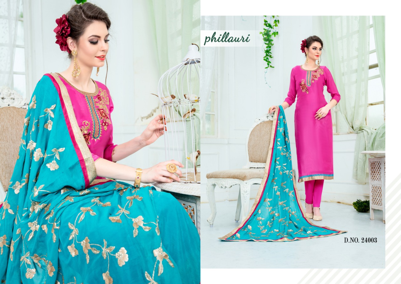 ||OM SHREE GANESHAY NAMAH|| *" PHILLAURI"* We are presenting Phillauri Vol - 11 after the Great Success of Phillauri Vol-10. New Stylish *Heavy Worked Salwar Suit With All Over Heavy Worked Dupatta With Sequence and Zari Work*. Catalog------Phillauri Vol - 11 *24001 SERIES..* Fabrics----- ? Top - Pure Uppada Silk ? Bottom - Heavy Santoon ?Dupatta - Pure Chinnon Average Rate--1695/- + 5% GST Extra TypeÂ? *Unstitch Salwar Suit* Dispatching Starts from----10/10/2018 ???????????? |