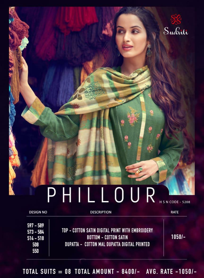 Buy Online Phillour By Sudriti Manufacturer Traders Surat Gujrat 8 Pcs of Full Catalogue at Wholesale Price. Looking for Phillour By Sudriti Manufacturer Traders Surat Gujrat Full Catalouge at Best Price? Buy Now Phillour By Sudriti Manufacturer Traders Surat Gujrat at Wholesale Rate of Rs 8400 with Total 8 Pcs from authroized dealer and supplier of SUDRITI Brand. Cost of Each piece is just only Rs 1050 which is very low and affordable price to resale the product in your retail store ,This is Surat based Wholesale Supplier & Dealer of SUDRITI Brand. Click on Brand name to Know more about SUDRITI Brand's products.Call or Whatsapp on 9898838984 for booking or enquiry