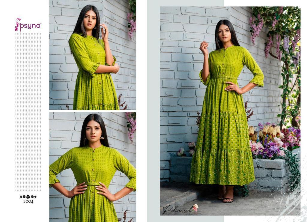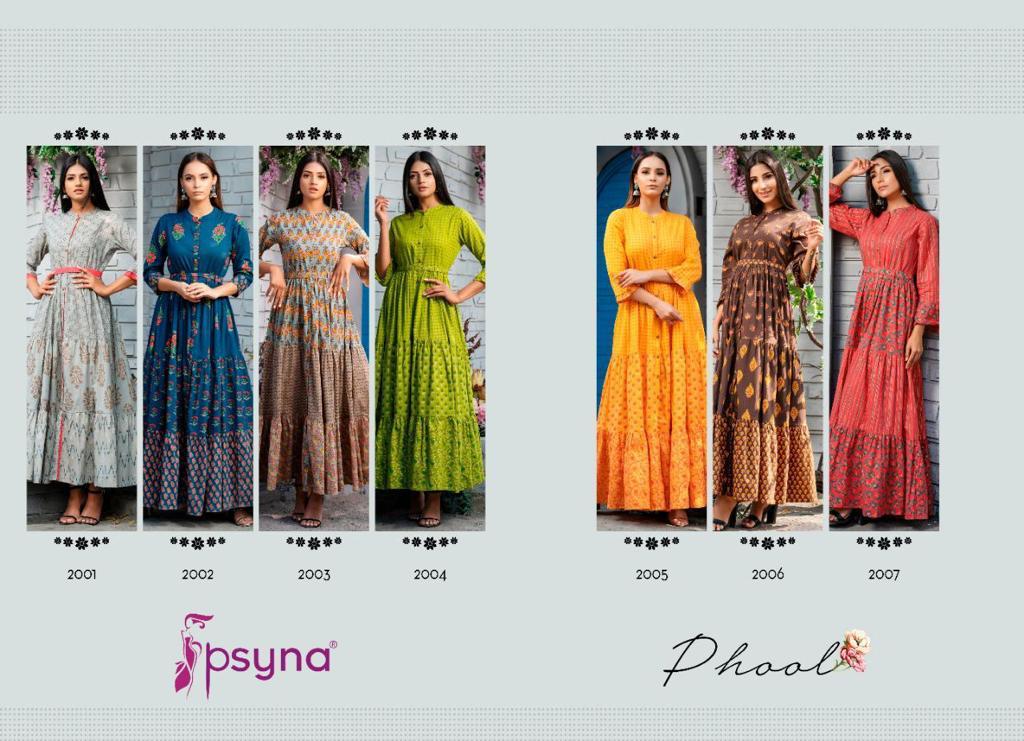Buy Online Phool Vol 2 By Psyna Kurtis Wholesale Dealer And Exporter India 7 Pcs of Full Catalogue at Wholesale Price. Looking for Phool Vol 2 By Psyna Kurtis Wholesale Dealer And Exporter India Full Catalouge at Best Price? Buy Now Phool Vol 2 By Psyna Kurtis Wholesale Dealer And Exporter India at Wholesale Rate of Rs 6293 with Total 7 Pcs from authroized dealer and supplier of PSYNA Brand. Cost of Each piece is just only Rs 899 which is very low and affordable price to resale the product in your retail store ,This is Surat based Wholesale Supplier & Dealer of PSYNA Brand. Click on Brand name to Know more about PSYNA Brand's products.Call or Whatsapp on 9898838984 for booking or enquiry