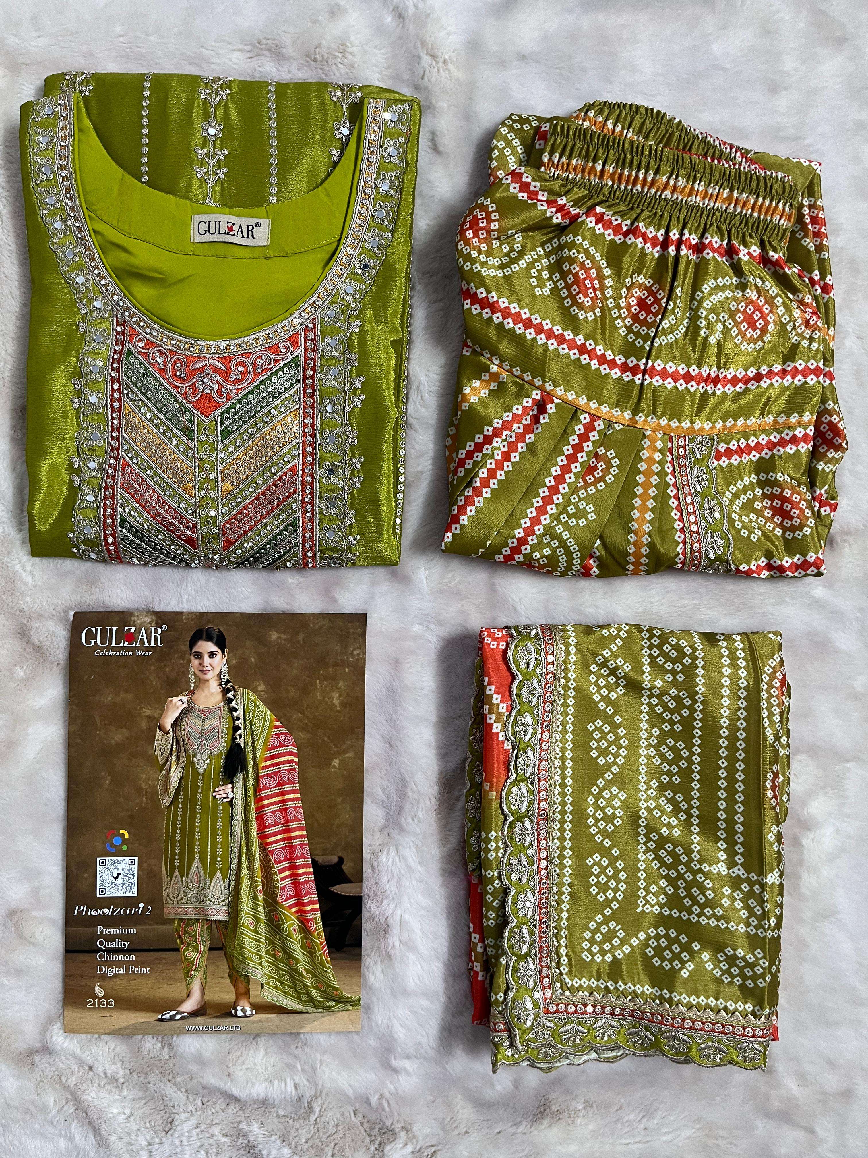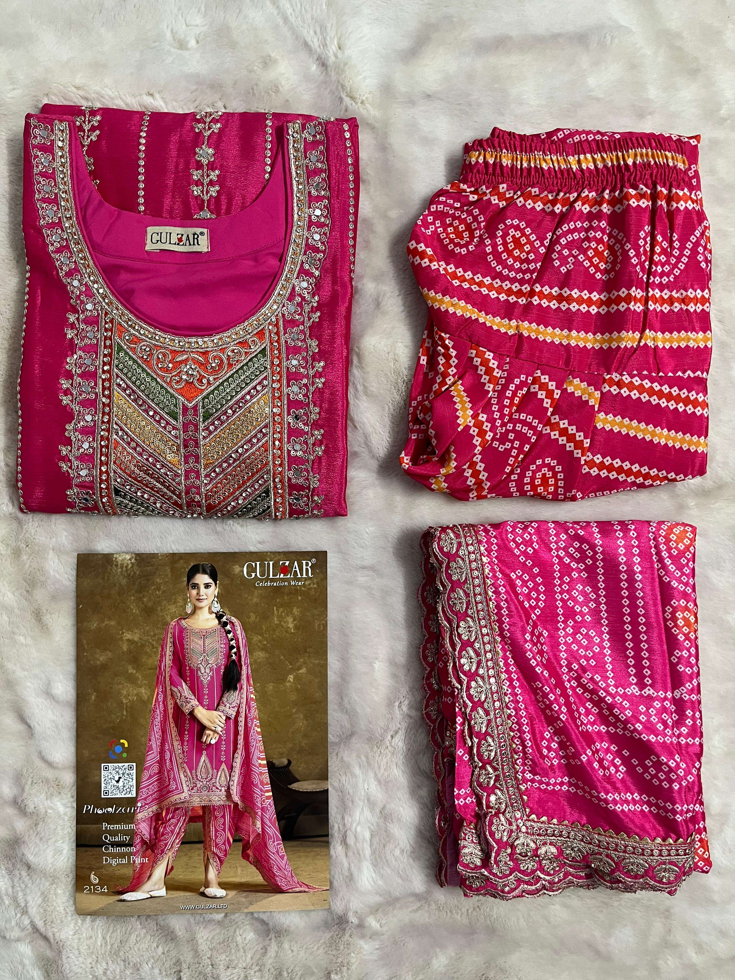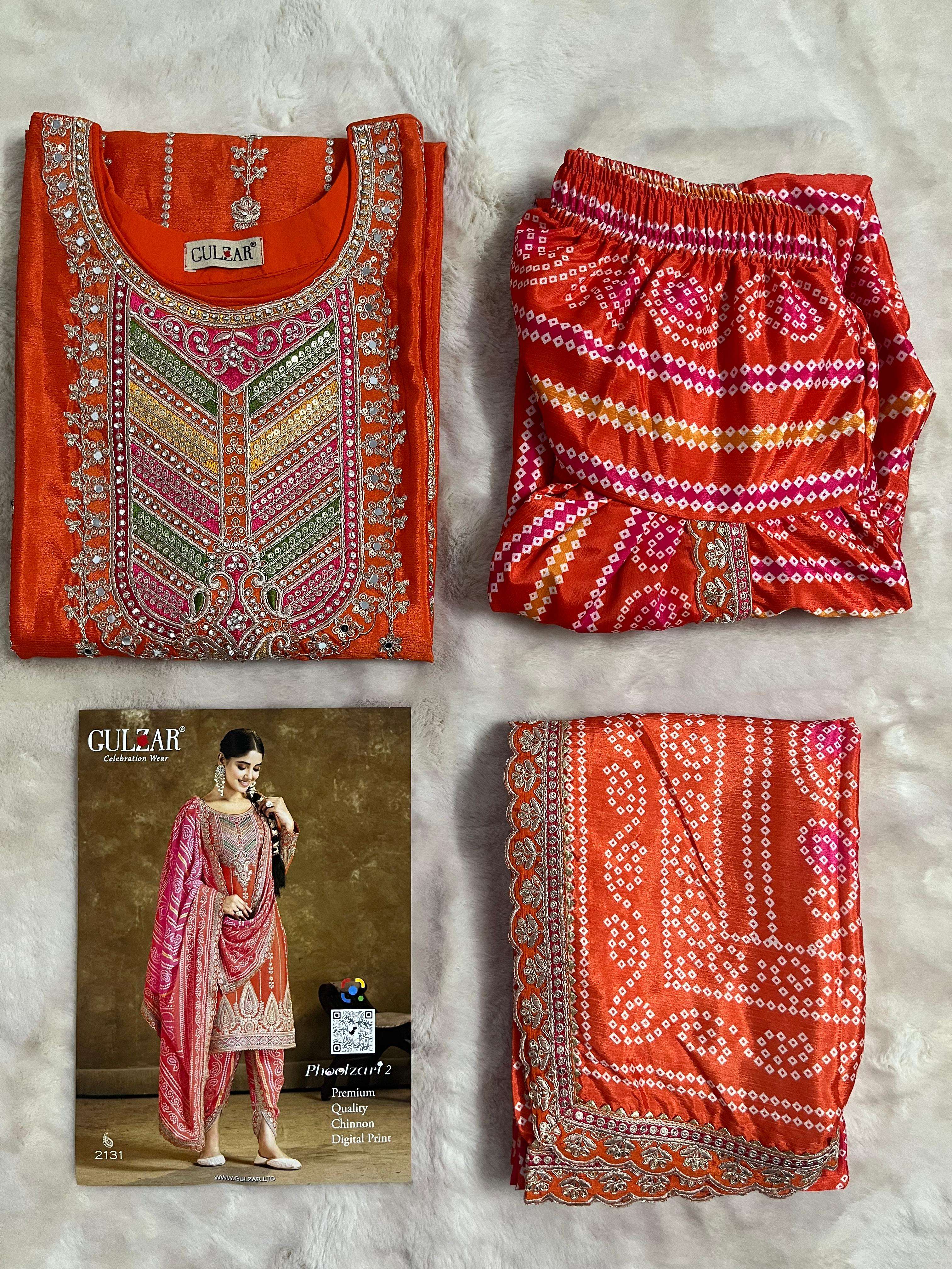Buy Online Phoolzari D No 2131 2134 by Gulzar Fiber Chinon Readymade Suit collection manufacturer surat 4 Pcs of Full Catalogue at Wholesale Price. Looking for Phoolzari D No 2131 2134 by Gulzar Fiber Chinon Readymade Suit collection manufacturer surat Full Catalouge at Best Price? Buy Now Phoolzari D No 2131 2134 by Gulzar Fiber Chinon Readymade Suit collection manufacturer surat at Wholesale Rate of Rs 11980 with Total 4 Pcs from authroized dealer and supplier of GULZAR Brand. Cost of Each piece is just only Rs 2995 which is very low and affordable price to resale the product in your retail store ,This is Surat based Wholesale Supplier & Dealer of GULZAR Brand. Click on Brand name to Know more about GULZAR Brand's products.Call or Whatsapp on 9898838984 for booking or enquiry